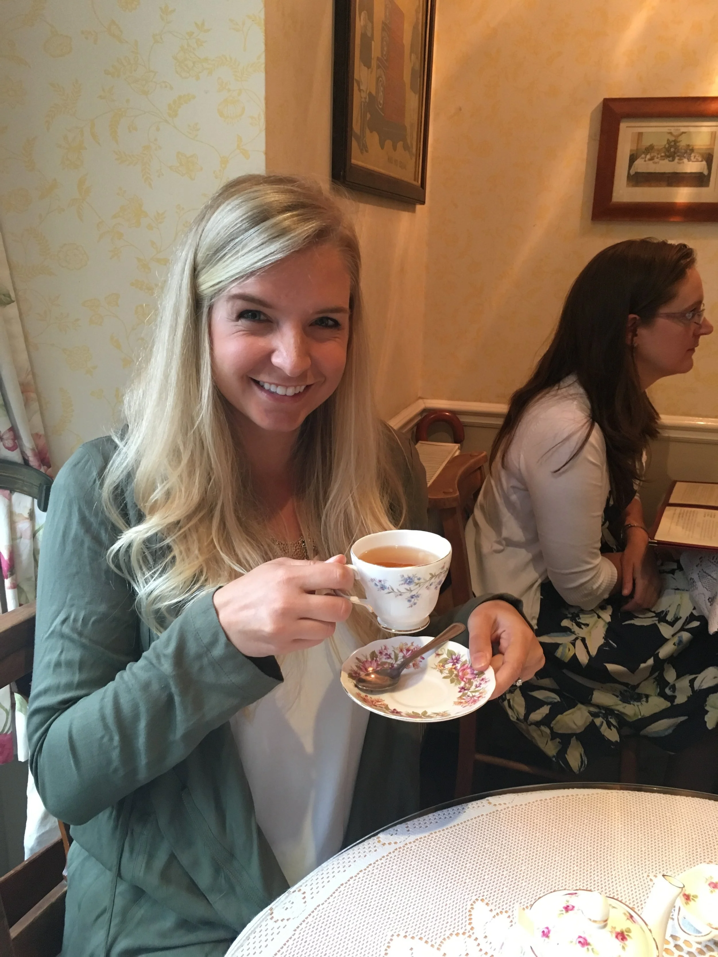 Friday Katlin had planned for the rainy weather perfectly. We were still able to get in our walk with it just sprinkling, but the skies opened up earlier. No mind to us because we were enjoying a lovely tea brunch at this tearoom called Peacocks. They serve you in real English china, in an assortment of mismatched prints. There are few things better than a grown up tea party! I could have stayed there for days, trying all their different teas, watching the rain drip down the windows which showcased the gardens beyond. After tea we ran next door to the antique store to spend the next hour or so! We each found a lovely tea set (I found 2!) to take home. Katlin’s even had the Thistle flower on it, her maiden name! I found 2 unique ones that I liked and snagged them up to add to the beautiful china plate my Great Grandmother gave me. I also found an awesome antique rug (that is SO #ChipAndJoannaGains) that I had wrapped up and I carried on my flight all the way home! It lives in our Bathroom and is perfect. Later that day we enjoyed a tour of the Ely Cathedral, which included a lot of history about the area. That night we met up with Katlin’s friends again for dinner and some time out on the town in Bury St. Edmunds! We enjoyed the 15-minute walk to and from downtown, as well as the cozy restaurant and bars we got to pop in and out of. The weather turned cool with the rain, so I had to borrow boots and a sweater to go out! It was really wonderful getting to know her friends there, knowing she is in good hands with Ryan is gone.
