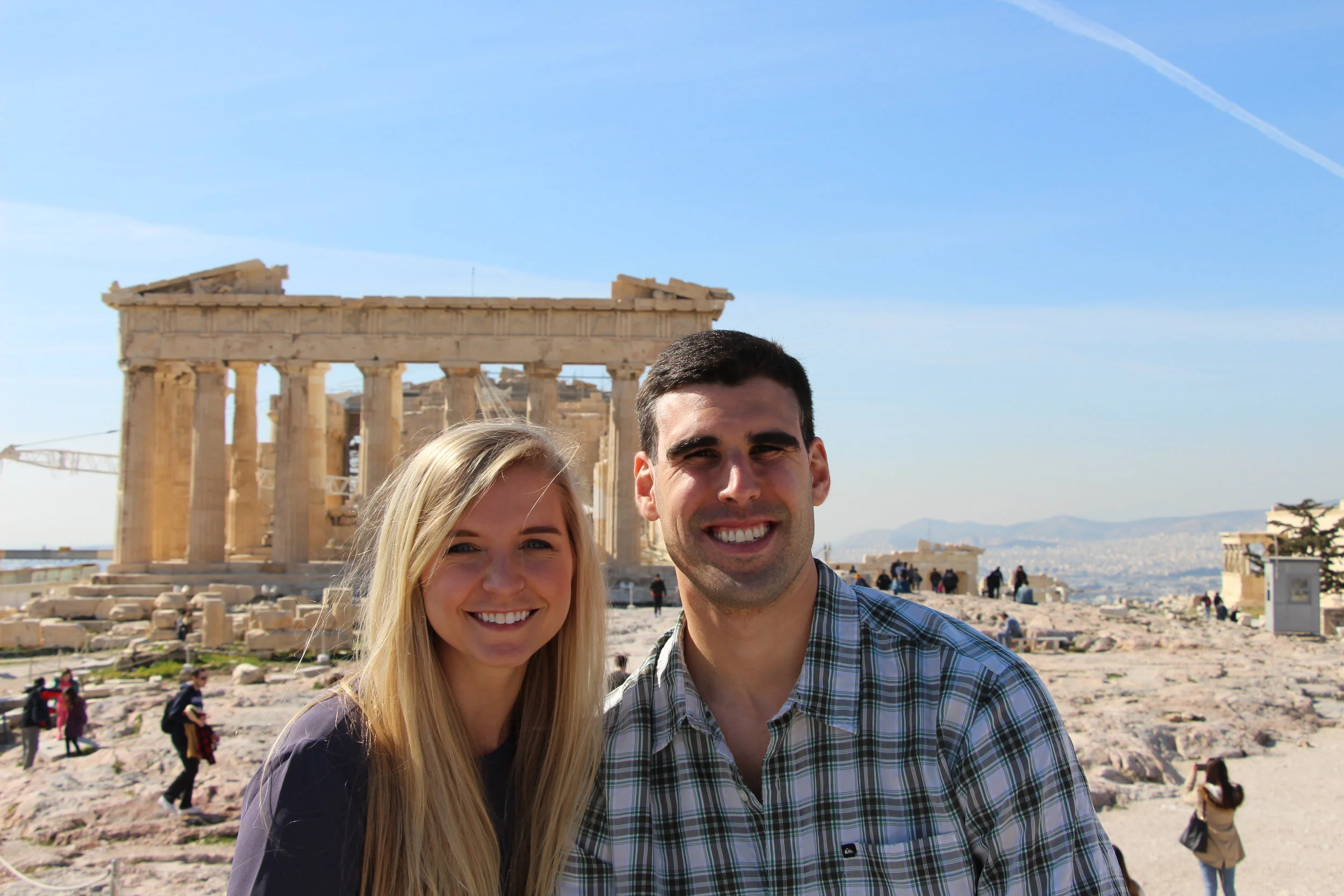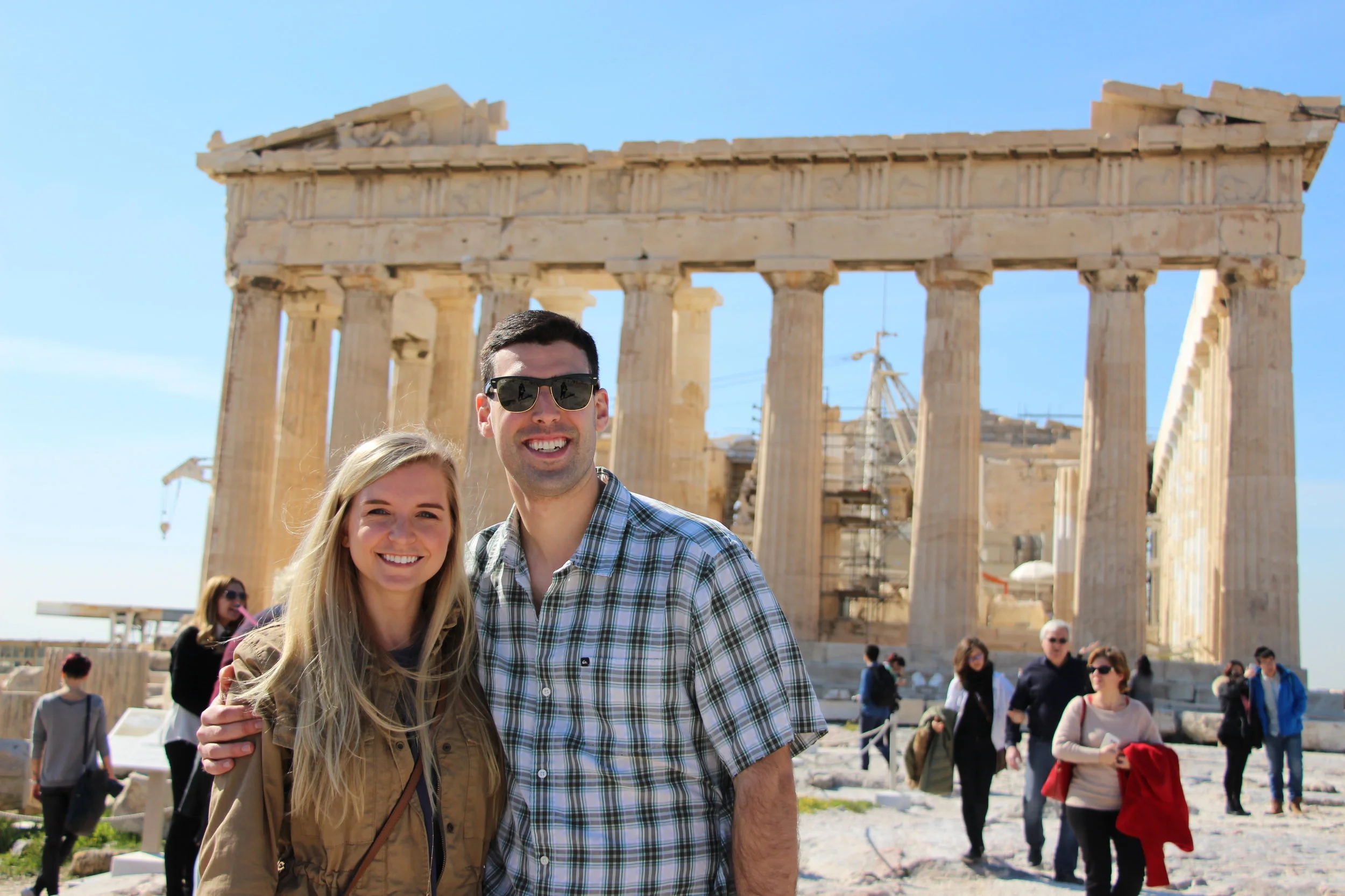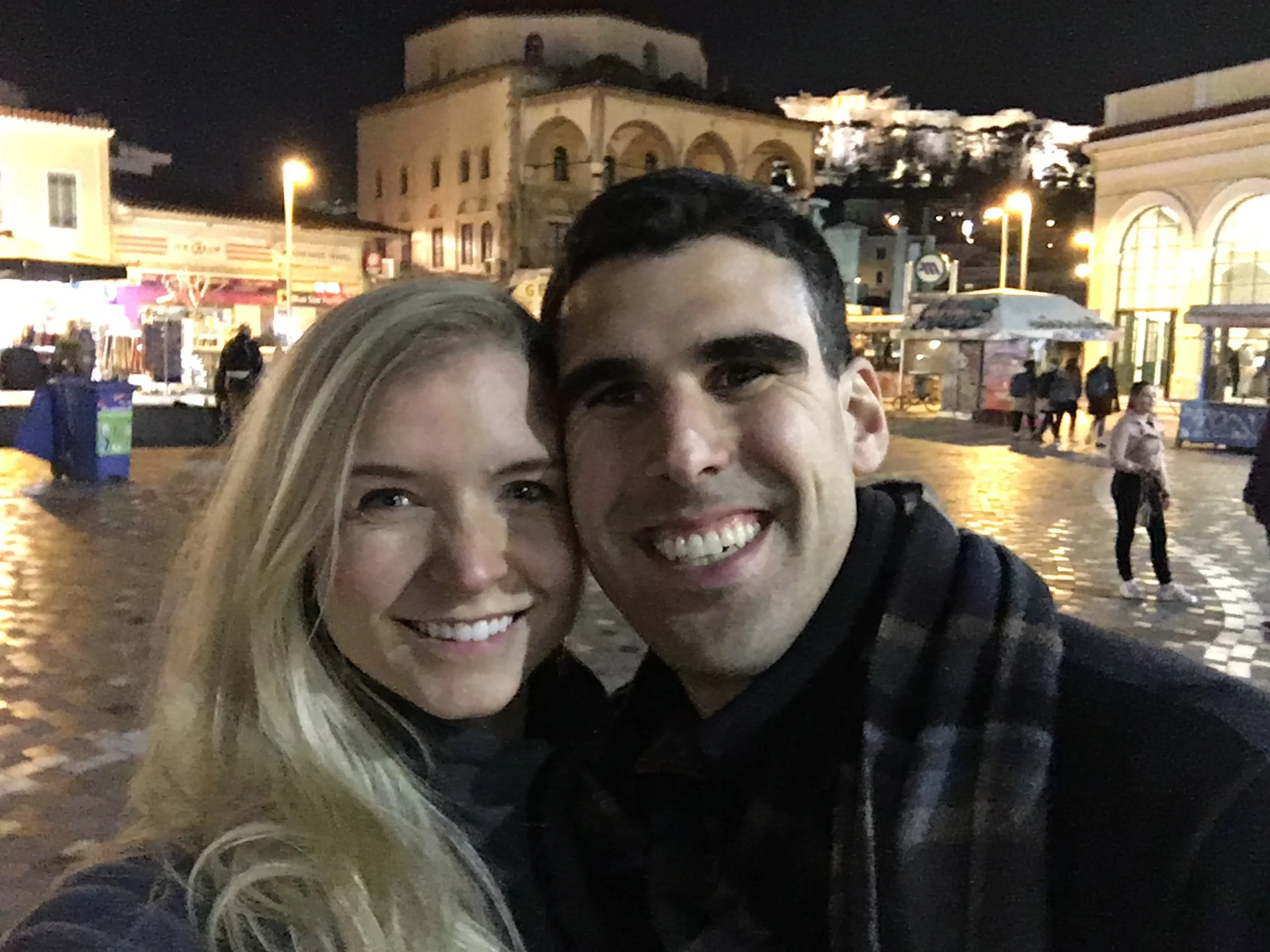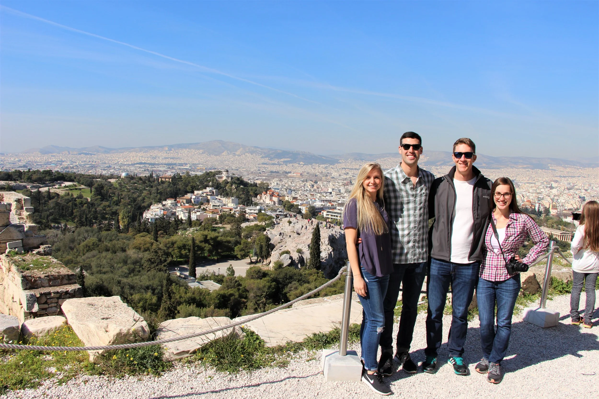 A few months ago a good friend of Michael’s (and a groomsmen in our wedding), Riley, reached out to Michael asking if we were interested in a Greece trip! His wife, Katie, and he had just found a flash sale for cheap tickets to Greece in February and were going to pull the trigger and would love for us to join them! Riley, an Aeronautical Engineer in the US Airforce, received a really unique opportunity leading him Katie to live in Israel for 2 years. We have talked about visiting them there at some point while we are living in Germany because we are a (little bit) closer to them now, but were thrilled at the prospect of not only seeing them, but doing so via a vacation to Greece! I was also very excited to meet Katie! Michael met her briefly when he visited Riley back in Ohio in 2014 but it’s been that long since Michael and Riley have been able to spend time together.