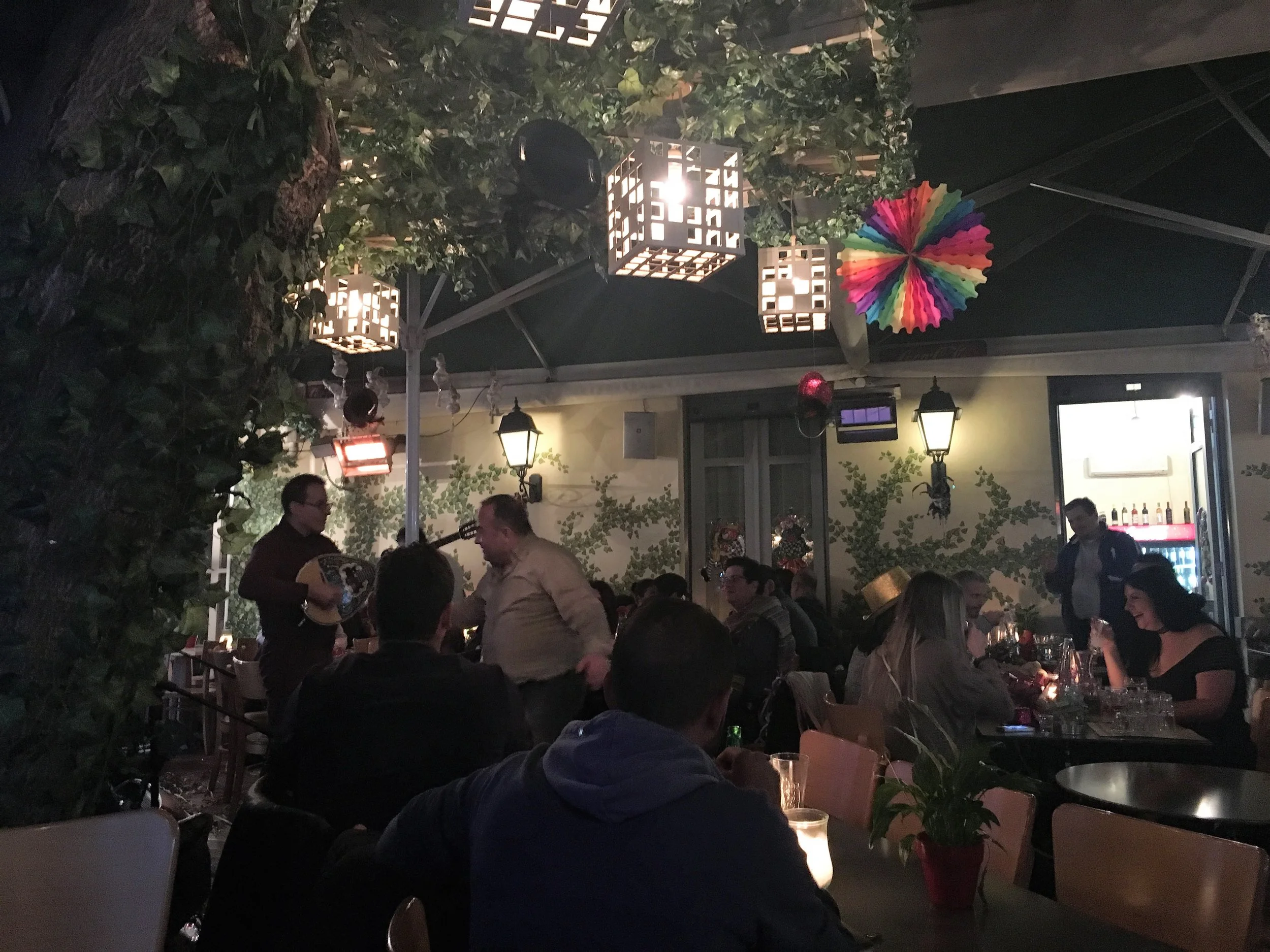 We made it back to our Airbnb for some munchies and then headed out to an AMAZING dinner that was one of the unexpected highlights of the trip. Katie chose it based on a Rick Steves review and when we showed up we were excited to see a set menu option that included 7 courses for $20 per person. Being that there were 2 menus to choose from, we ended up just ordering both for the table and went to town. Katie and Riley were more than happy to split all the food, and we were pretty excited about it! All traditional Greek fare, we had a really hard time choosing our favorite dish! It was exceptional (and the best part- reasonably priced!). After dinner, we wandered back to the AirBnb to get some rest- but the boys had other ideas. They went back out to grab a drink, enjoy some live music, and have some “bro-time” catching up.