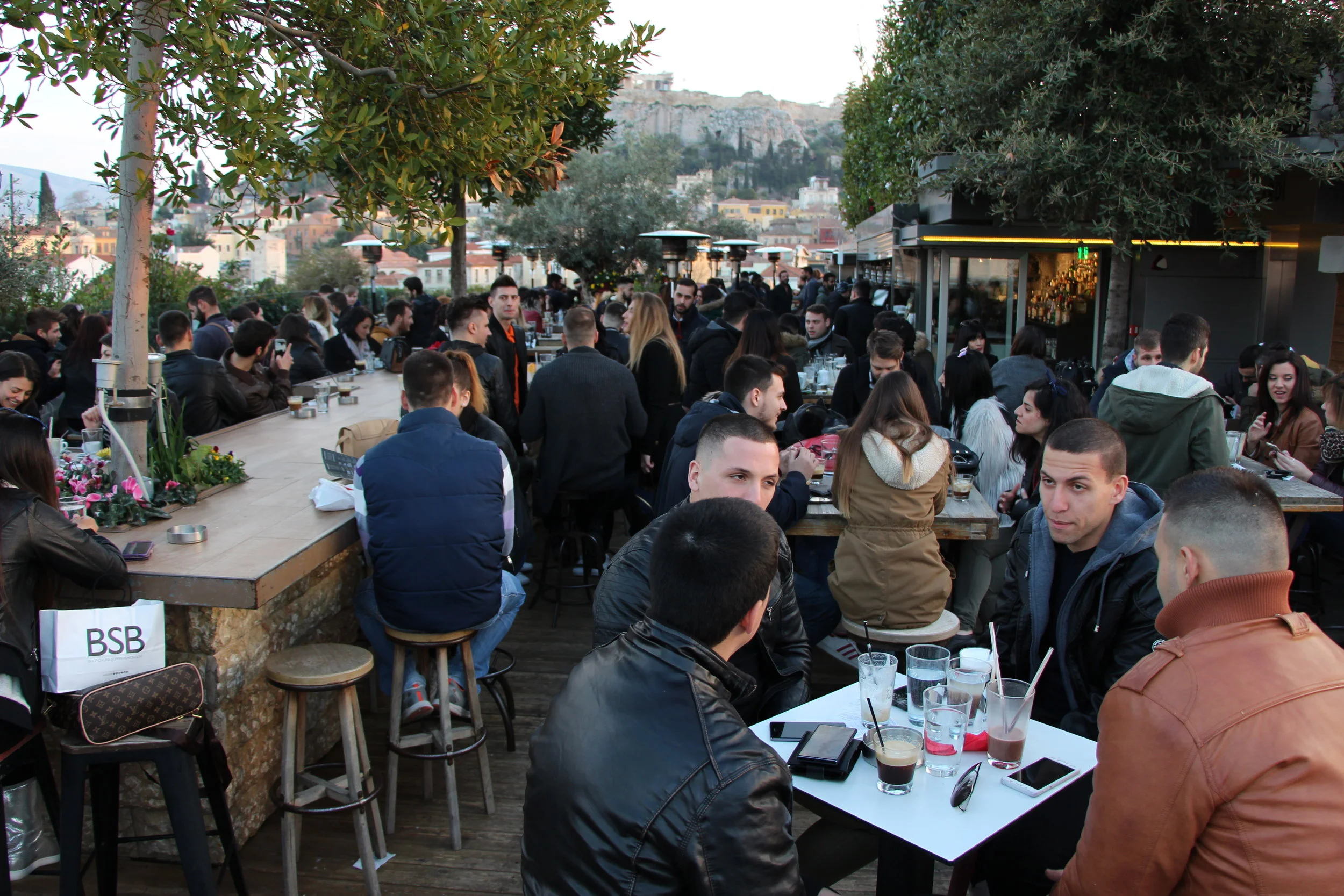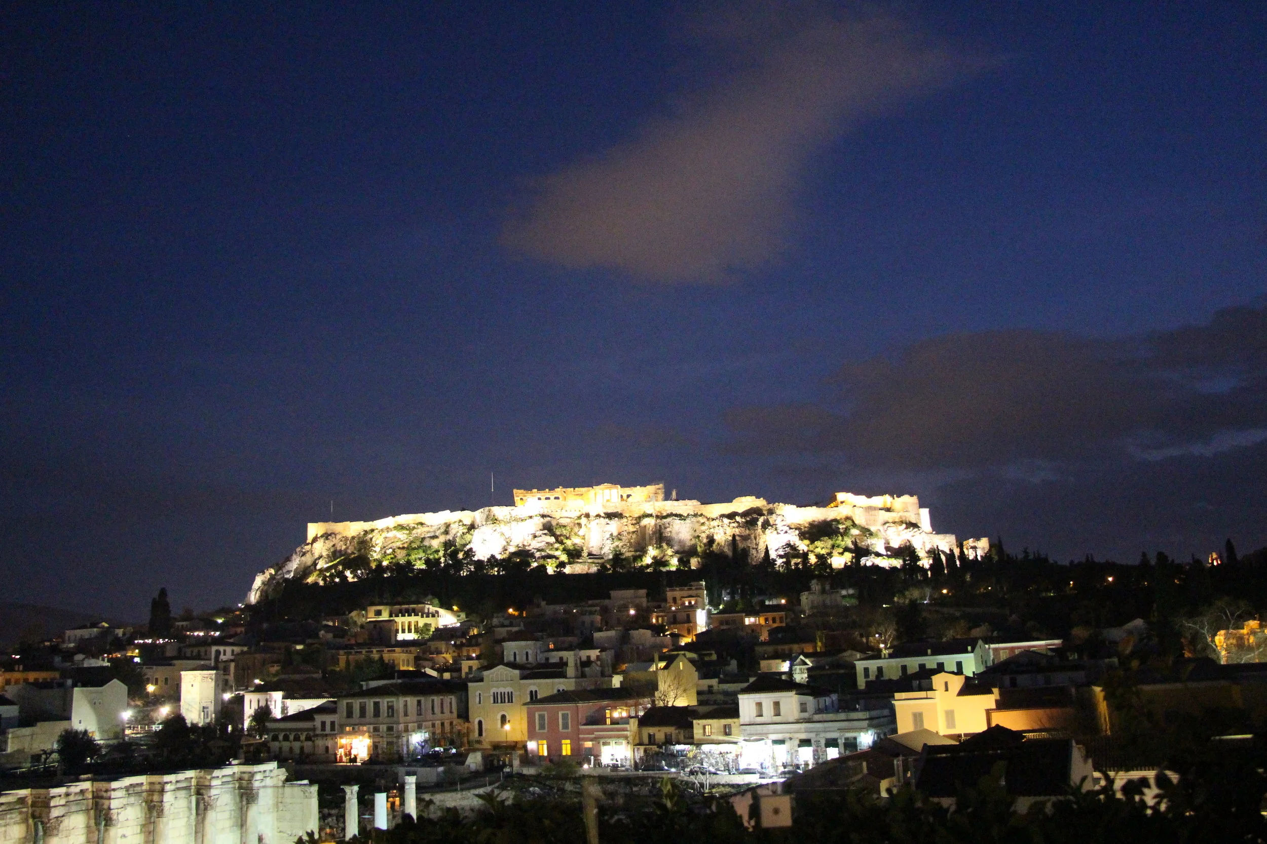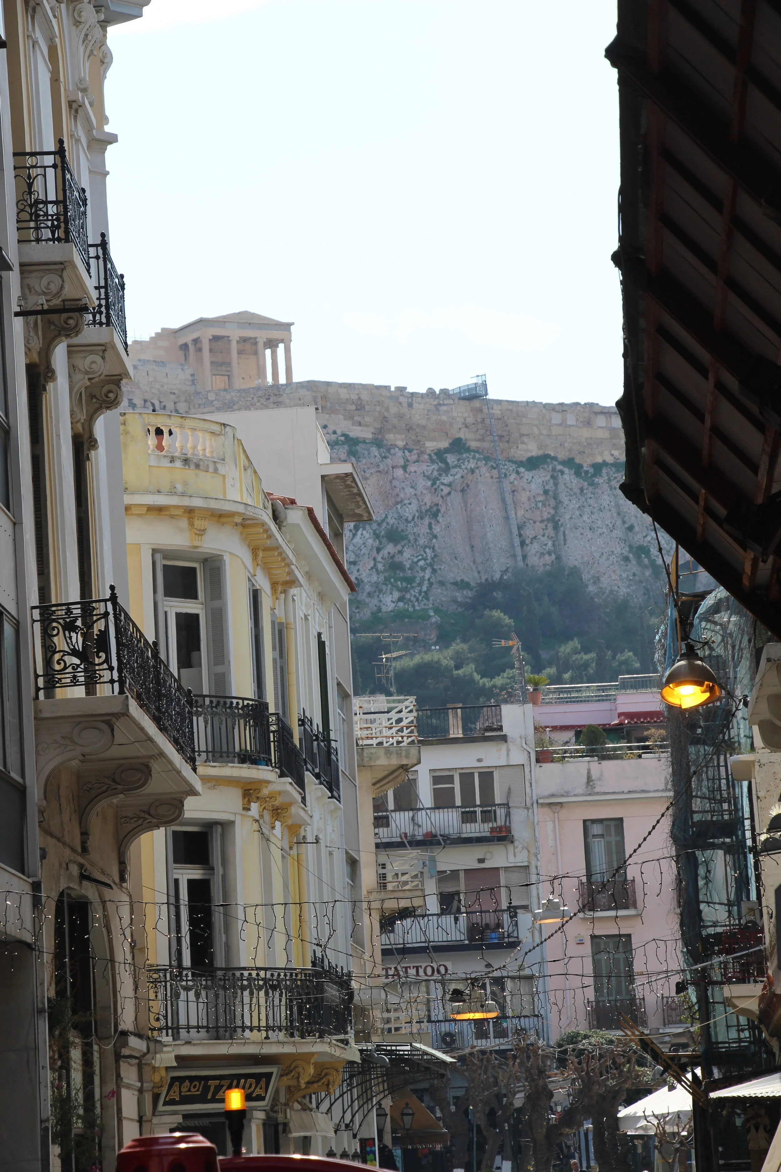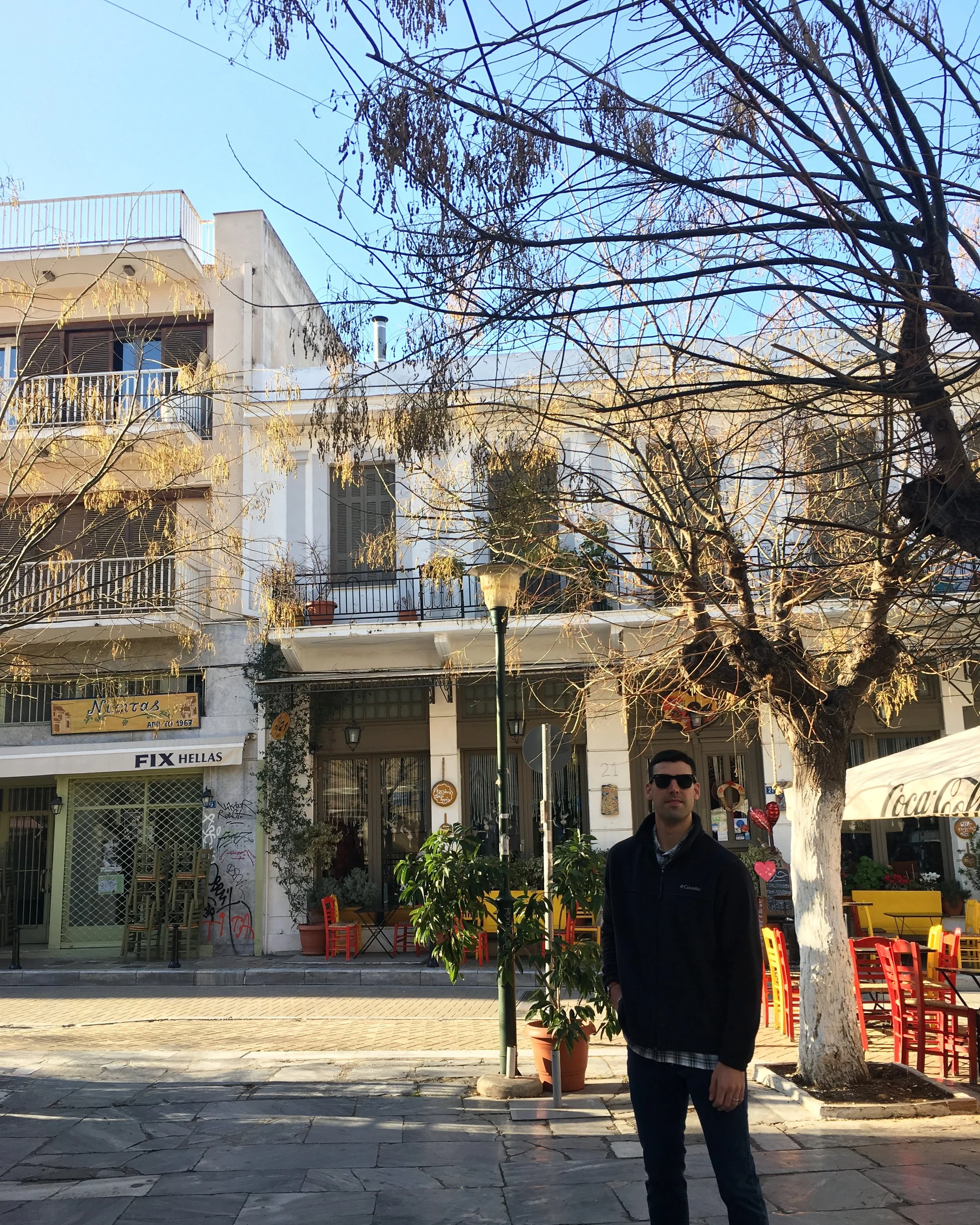 Thursday evening Michael and I were off! The best tickets we could find got us into Athens at 10pm so we flew in that night and Katie and Riley met us the next morning. Michael and I landed in Athens, hopped in an Uber and met our Air Bnb host, Stelios, close to midnight. He let us in to our private apartment just minutes away from the Acropolis and gave us a quick tour. Once we got settled we were off to explore Athens night life, worried it might be hard to find somewhere to eat dinner so late. Not only are they like most Europeans, a lively bunch late into the night, they were celebrating “pre-lent” by eating ALL THE MEAT, having BBQ’s, and going out for a week of revelry: drinking, dancing and enjoying the good things in life before lent started and restricted their fun. (Of course at the time Michael and I did not know WHY it was so exciting out, but just that we loved being a part of it!). We walked the 5 minutes to Monastiraki square and caught our first glimpse of the Acropolis all lit up. There were street vendors, skate boarders, bar-goers and everything in between. Even at midnight it was lively as ever. We wandered around until we found a string of restaurants offering outdoor seating- it was cool but not uncomfortable at all with a jacket. We snagged a table at one of the cafes and dove into a few Athens beers, some yummy sausage pastry and a gyro. We thought we would be closing the place down but people were still sitting down to order at 1am! After our late dinner we wandered around a bit more and stumbled upon this fantastic restaurant with live Greek music pouring out from it. There were streamers on the ground, evidence that something festive was happening, and it was pretty full, but we managed to grab a table and order a few drinks. Talk about people watching to the extreme: grown men taking the dance floor solo in tradition fluid Greek footsteps to the music, arms outstretched… a group of girls all dressed up enjoying their gal time… another table with an older crowd sitting around singing to the music… a girl dressed to the nines dancing on a chair for her boyfriend (I hope- ha!)… the entertainment was never ending! We posted up here for a while just taking it all in before the place started clearing out around 2am and we also decided to call it a night.