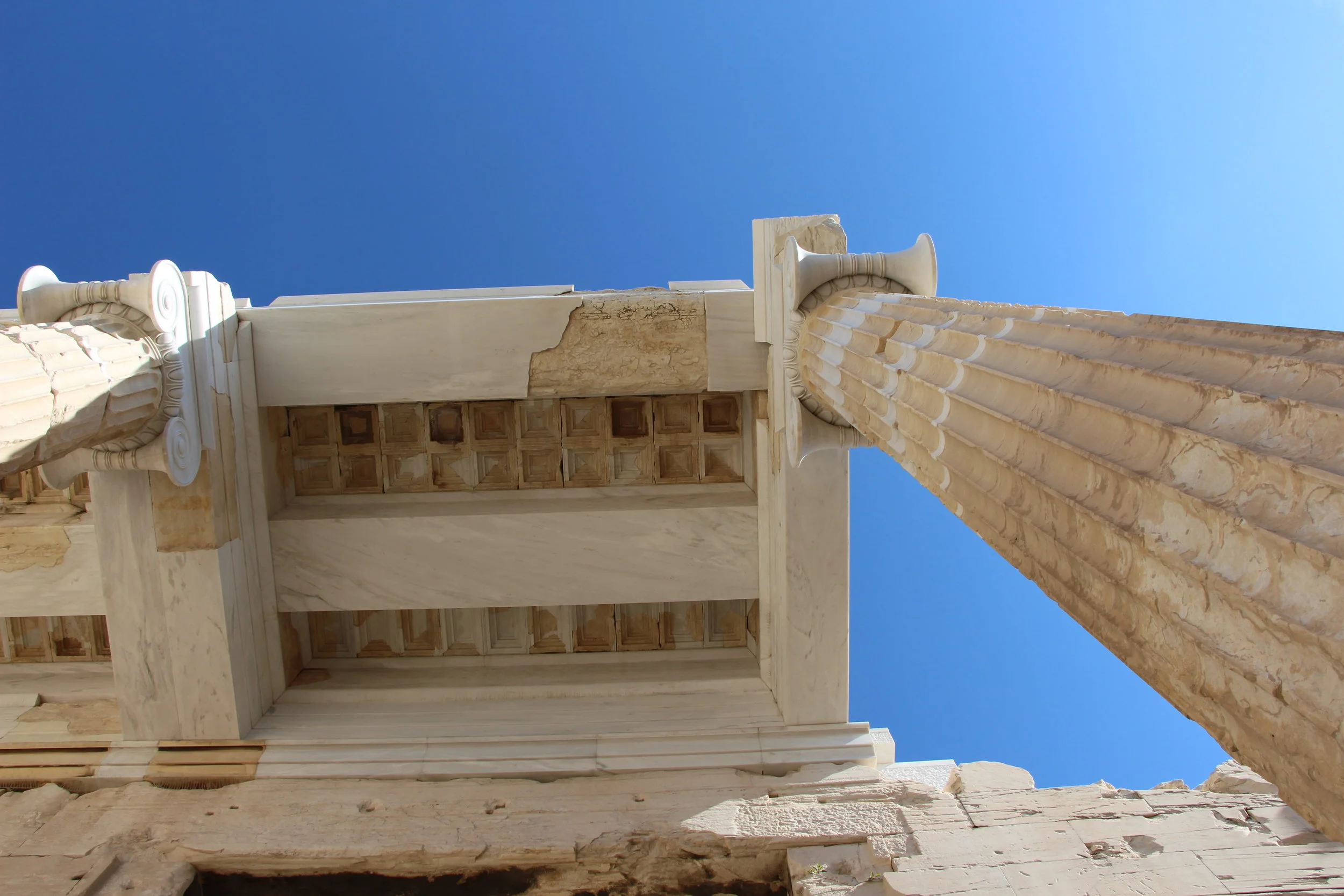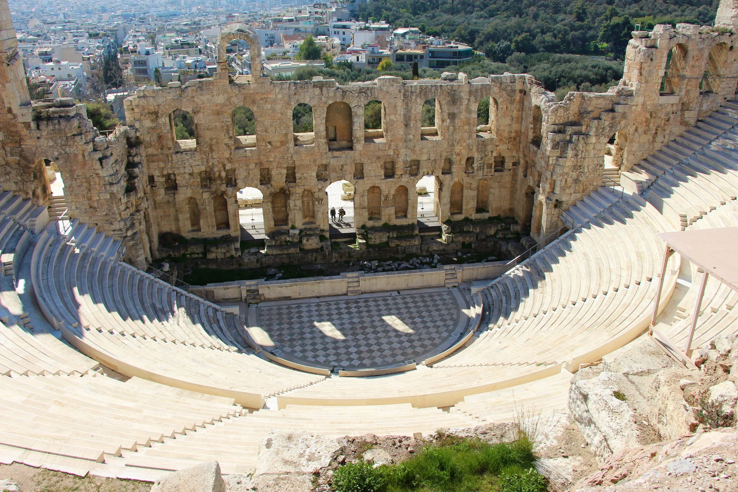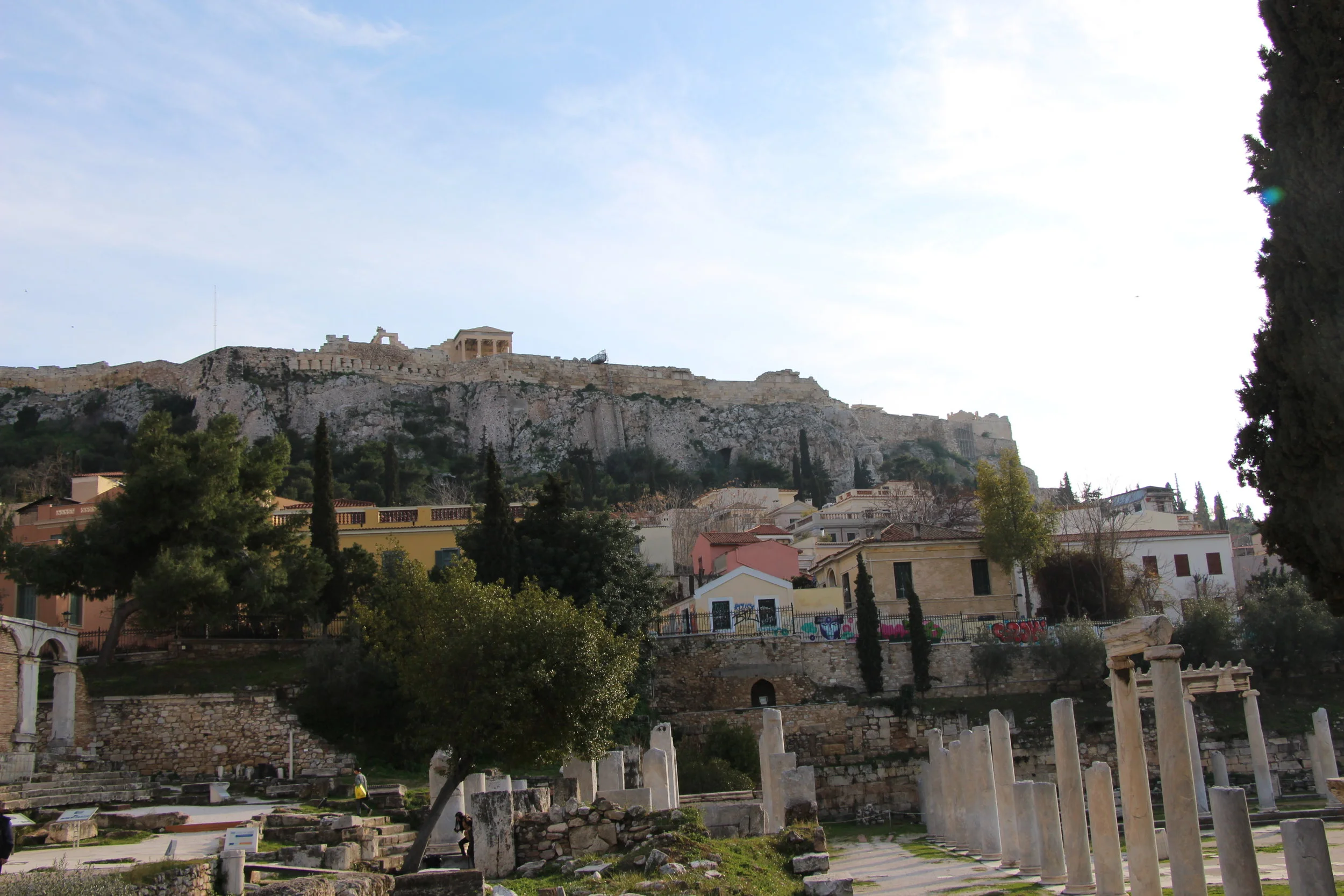 Friday morning, we were up bright and early to shower and get ready for the day and go scope out a grocery store for some breakfast. One of the points in which we were totally in agreement with the Livermore’s was the idea of cooking a few meals on the trip. Our Air Bnb’s each came with a kitchen so we were good to go! We made breakfast each morning and each agreed to cook one dinner. Michael and I found a great little store for dry goods, some cheese, spices etc. but could not find fresh fruit for sale anywhere! (Luckily when Katie and Riley arrived they had some fresh fruit with them which helped in the breakfast-making department.) We were so excited to see/meet them and our conversation was all over the place while we whipped up some breakfast and then headed out to the square to meet Effie- our fearless private tour guide we booked via Rick Steves’ recommendation. It was a wonder she was free knowing she can be booked MONTHS in advance, but this was one of our first perks of traveling in off season. We were greeted by this young, beautiful Greek woman clad in leather pants and jacket, pink off the shoulder top and luxurious straight brown hair that had me envious for hours. Needless to say, NOT what we expected, but she could not have been more warm and inviting and completely knowledgeable of all things Greece and Greek history. She took us up towards the Acropolis, stopping to point out and tell us about the Ancient Agora, Roman Forum and the Tower of the Winds. We wove through houses and souvenir shops before arriving at Mars Hill, where the Apostle Paul preached to the Athenians. Mars Hill sits right before the entrance to the Acropolis, but it is still a small hike up past the Odeon of Herodes Atticus- a huge outdoor theater that has been restored and still hosts famous outdoor concerts, to the grand entrance.