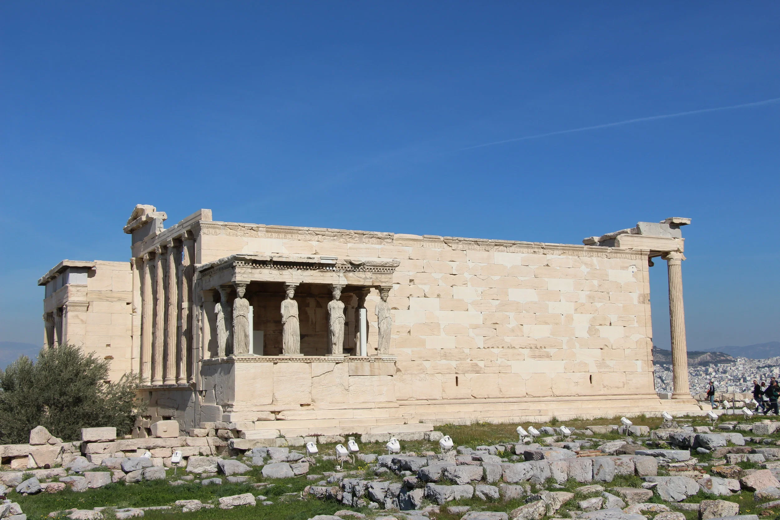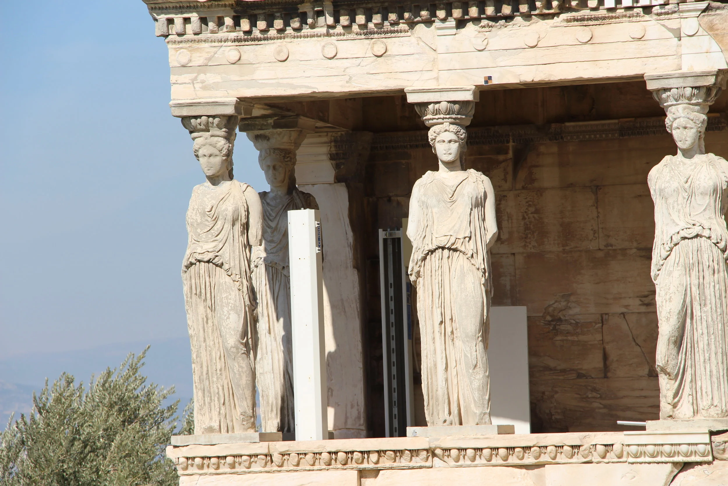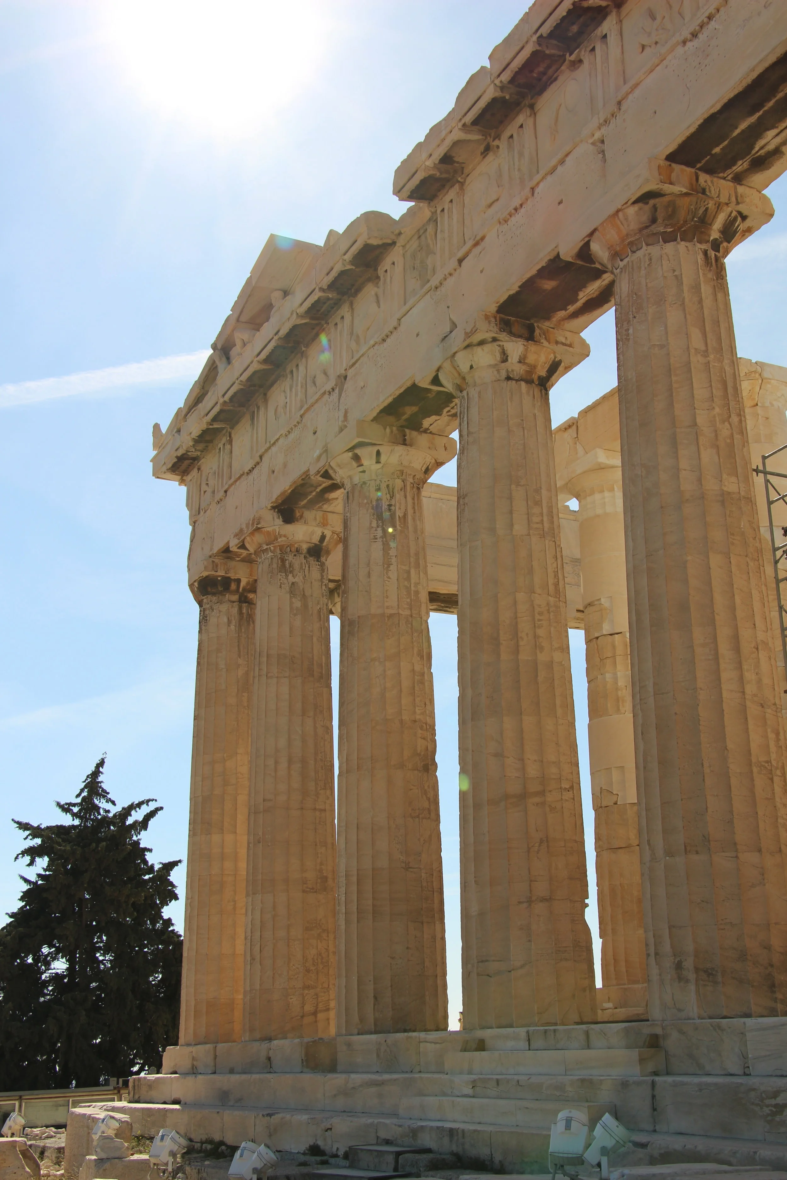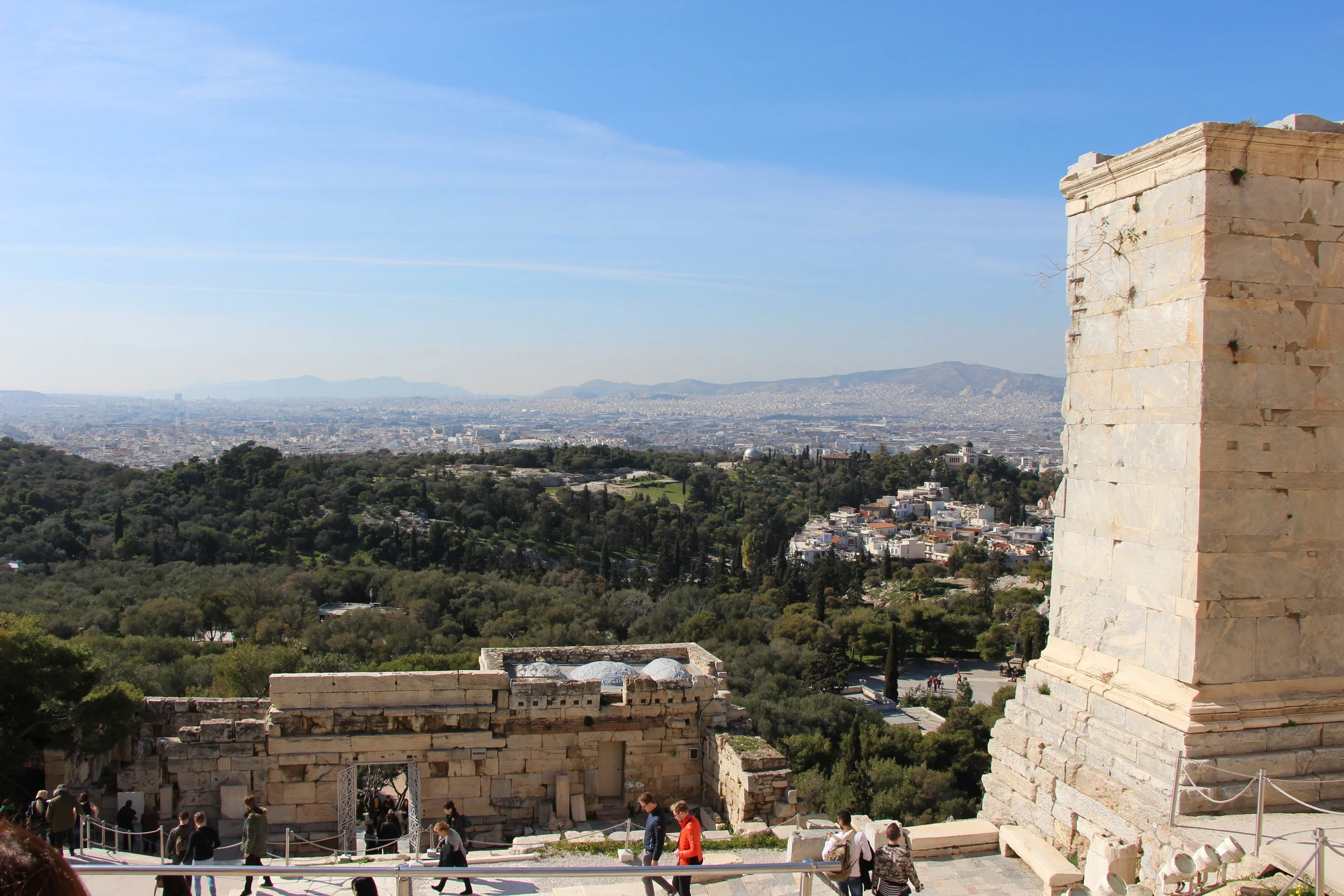I never really realized that the Acropolis sat high above the city of Athens on a Plateau, which was very difficult to get to (Hence the name, Acropolis… but Iguess I never stopped to think about it). Effie told us so much about Greek history, the purpose of all the theaters and temples, their culture and more. One thing I found really interesting was that instead of the steps leading up to the entrance as there is today, there used to be a massive ramp from the streets below all the way up to the entrance to make transportation of the sacrifices (marble statues, livestock etc) that would be carted up, significantly easier. Once through the grand entrance we came into view of the Parthenon, which has been under restoration for the last 17 years. They can only restore parts if they can remain 70% original. So for example if a certain column only has 50% original material, it will never stand. They have also carted off all of the remaining statues, reliefs and carvings to the Acropolis museum and put replicas in their place to ensure they stay in as good of shape as possible. All that to say- it is still massively impressive and WAY larger than I imagined. Walking the acropolis and viewing the Parthenon and the Erechtheion was like stepping back in time. You can only imagine this sacred spot coming to life, people pouring in to pray to their Gods, giving sacrifices for a better life or the answer to a prayer. Learning the stories of how many times Greece changed hands, being conquered by this power or that country, yet still its culture thrived and was even sometimes adopted by those who conquered them… proves testament to the fact that they had something good going. Something so good we spent the next 4 days experiencing in any way we could!