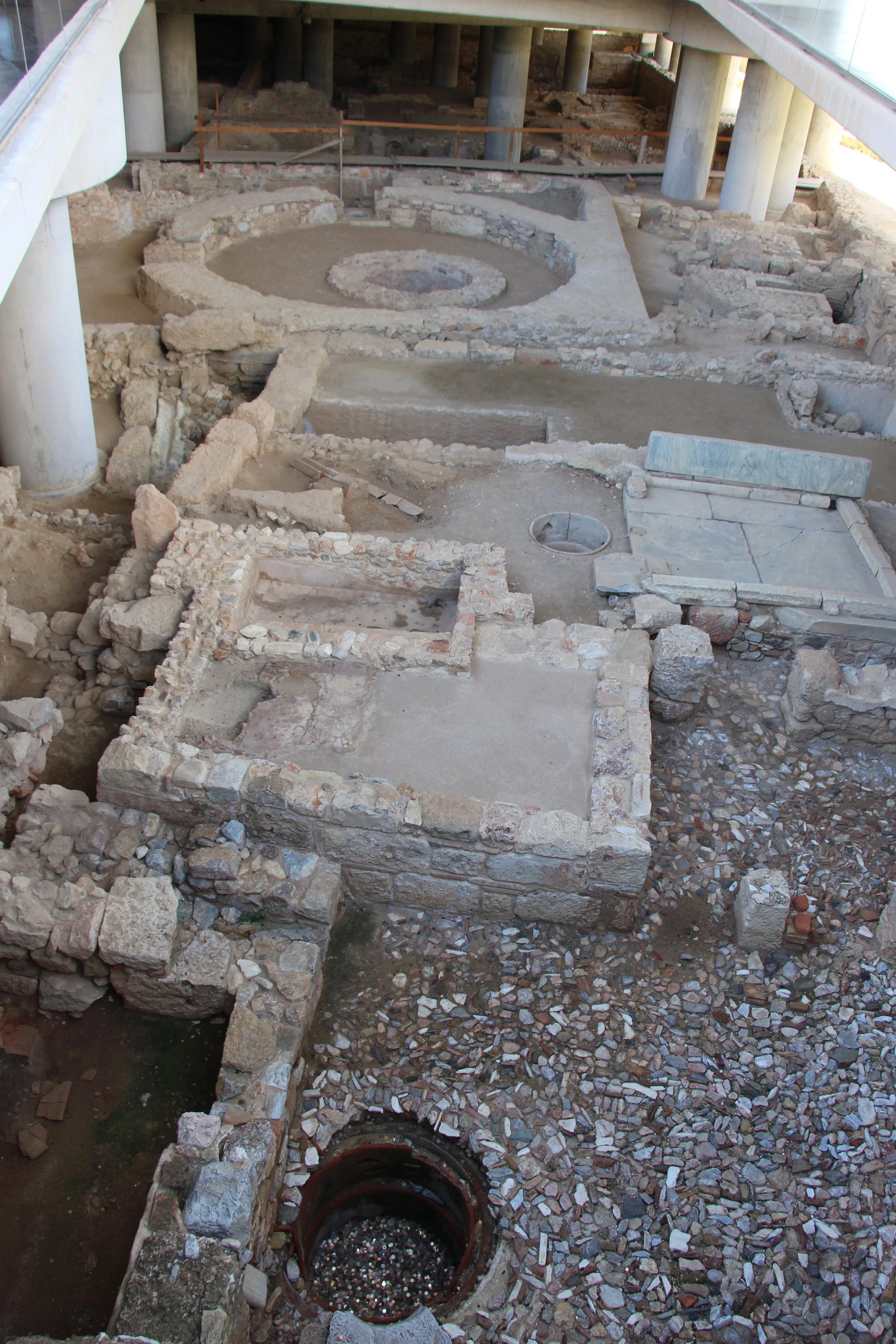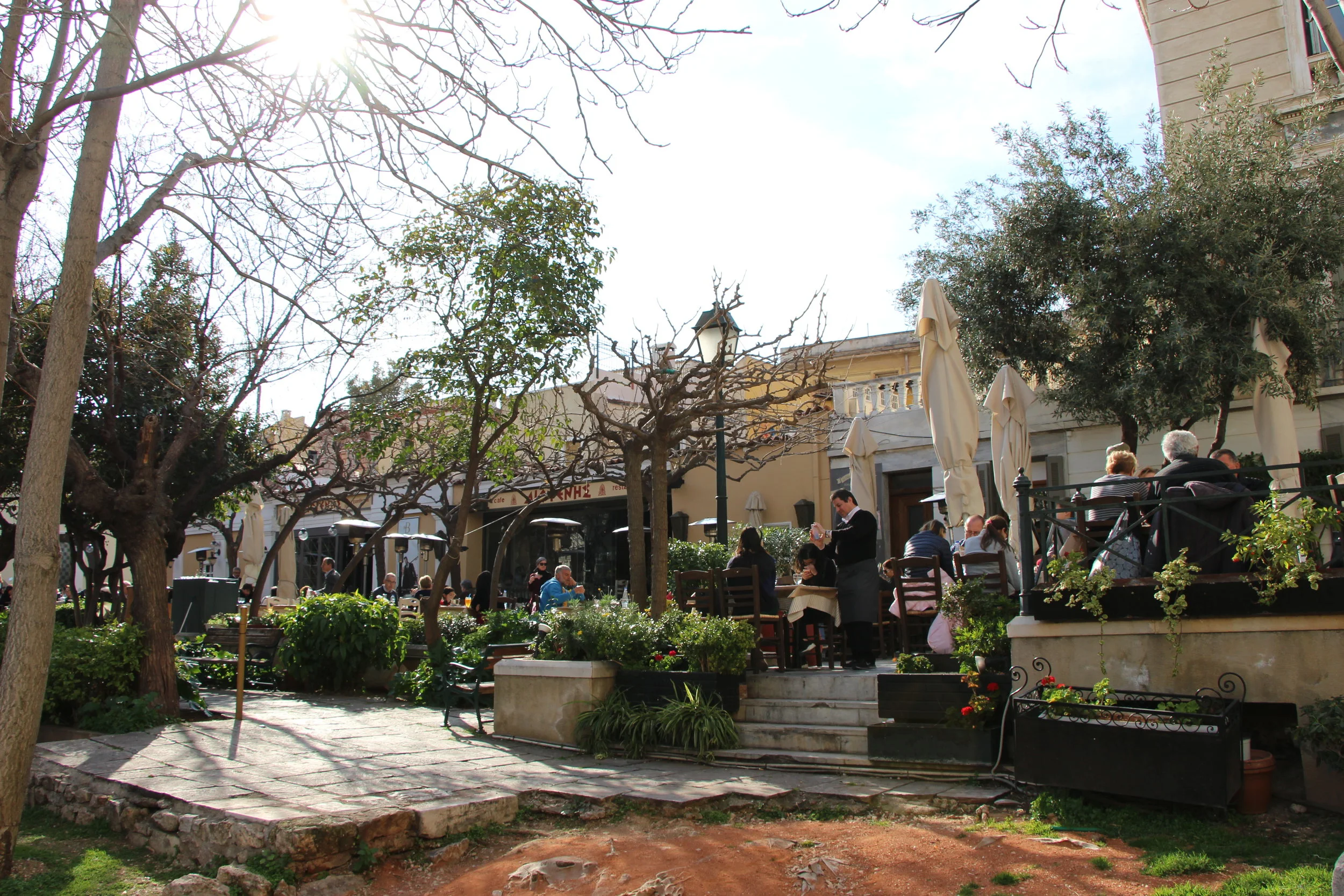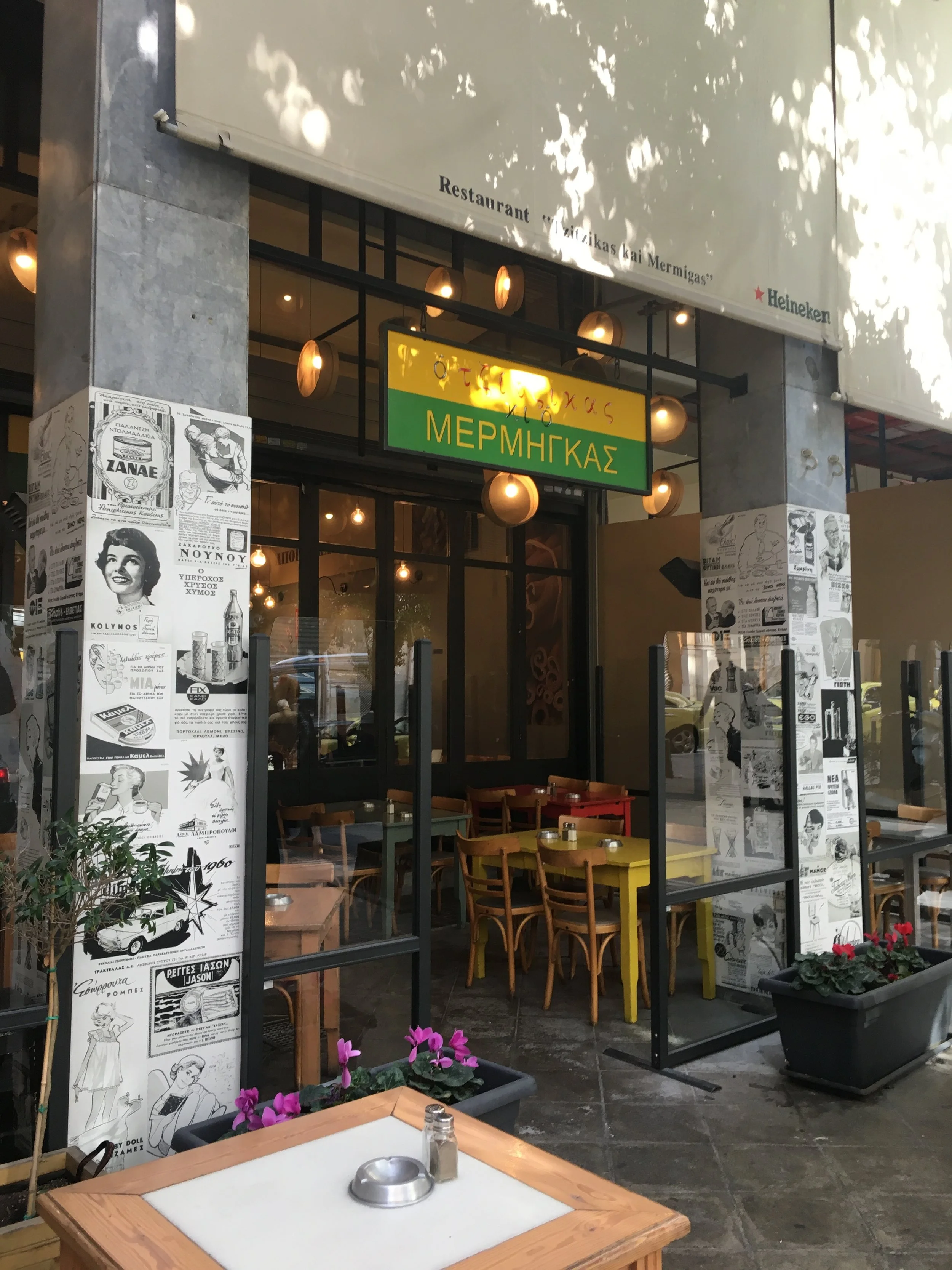 After the Acropolis Effie took us to our last stop- the Acropolis museum. A new museum built to host the pieces salvaged from the Acropolis, now held in the protection of the museum. It featured many statues that were offered as sacrifice which were really interesting, but the best part was the top level in which they display the pieces they have rescued and restored from the Parthenon in a true to size display, showing each piece where it would have hung or been placed on the actual Parthenon, which you can see through the floor to ceiling windows surrounding the museum. The actual pieces are shown in their worn, off-white natural shade, while replicas are interspersed in bright white stone. These replicas are of pieces that still currently exist, just not in their possession. Where are they you ask? Divided between the Louvre and the British Museum. There is quite some tension about whether or not they should be returned. While I can understand the benefits of the pieces being in a museum so people can see parts of the historic landmark even if they never have the chance to visit Greece, the way they came to own the pieces is not an entirely ethical story, and it really is a shame they cannot be displayed in their native land. In any case, the museum was wonderful but we were not there too long as our tour was coming to a close and we were ravenous for lunch! Effie sent us in the direction of a string of lunch options near the museum that all offered outdoor seating- as the weather was perfect.