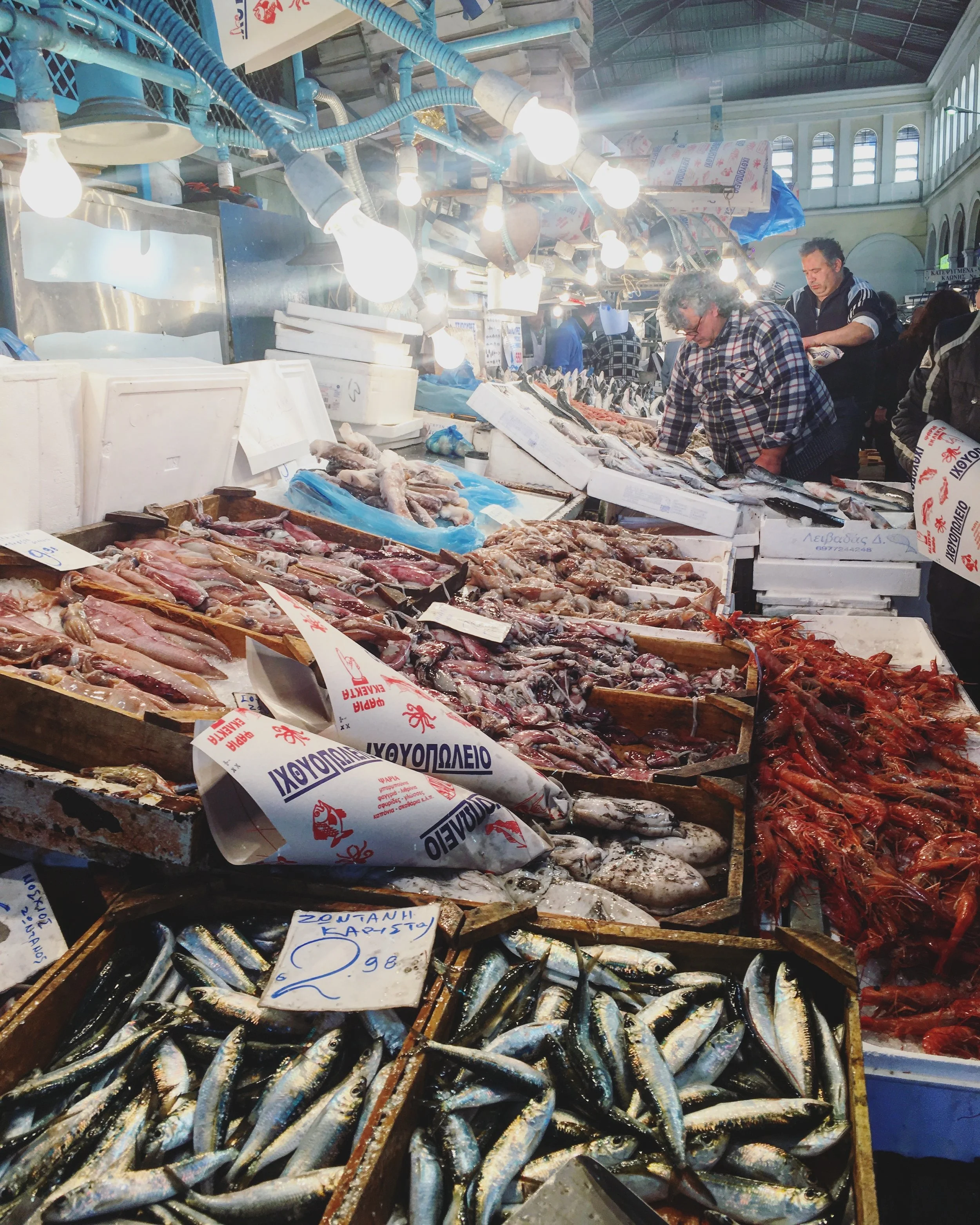 The next morning Riley, Michael and I headed to a lively open-air market- and lively does not even BEGIN to cover it! We had no idea what to expect, and it ended up being one of the highlights of the trip. There was row after row of fresh seafood and fish, then another section of meat- beef, chicken, rabbit, pork, everything! The isles were crowded, loud, smelly and SO fun! Each stall shouting out about their wares, enticing you to buy. Riley settled on a large salmon filet and “mystery white filet of fish” that ended up being tasty as well! Then we headed over to the much quieter and more colorful side of things for fresh fruit, veggies, olives, spices, cheese and bread. We loaded up on all sorts of snacks for our hike and in-between meals (because… #vaca right?) and Riley got some tasty looking veggies to go with the quinoa they brought from Israel. Michael and I spent some time in front of the olive stand- the guy was letting us try them all! They are so different than the canned olives we are used to- they are huge and fresh and almost crunchy because they haven’t been sitting in a jar of liquid for months. We settled on some green olives and Kalamata and when they guy asked “how much” in his broken English I cupped my hands and motioned to him in sign language “ummm…. This much?” to which he said “100 grams?” and I nodded stupidly because I have no idea what 100 grams looks like. He starts scooping them into the bag and it ends up being a LOT more than my pantomimed handful- but when he wrapped it up and said “2 Euro please” our jaws dropped to the floor. You’re telling me I can get an entire bag full of these delicious, fresh, Greek olives for only TWO EURO?!?! I’m never leaving Greece.