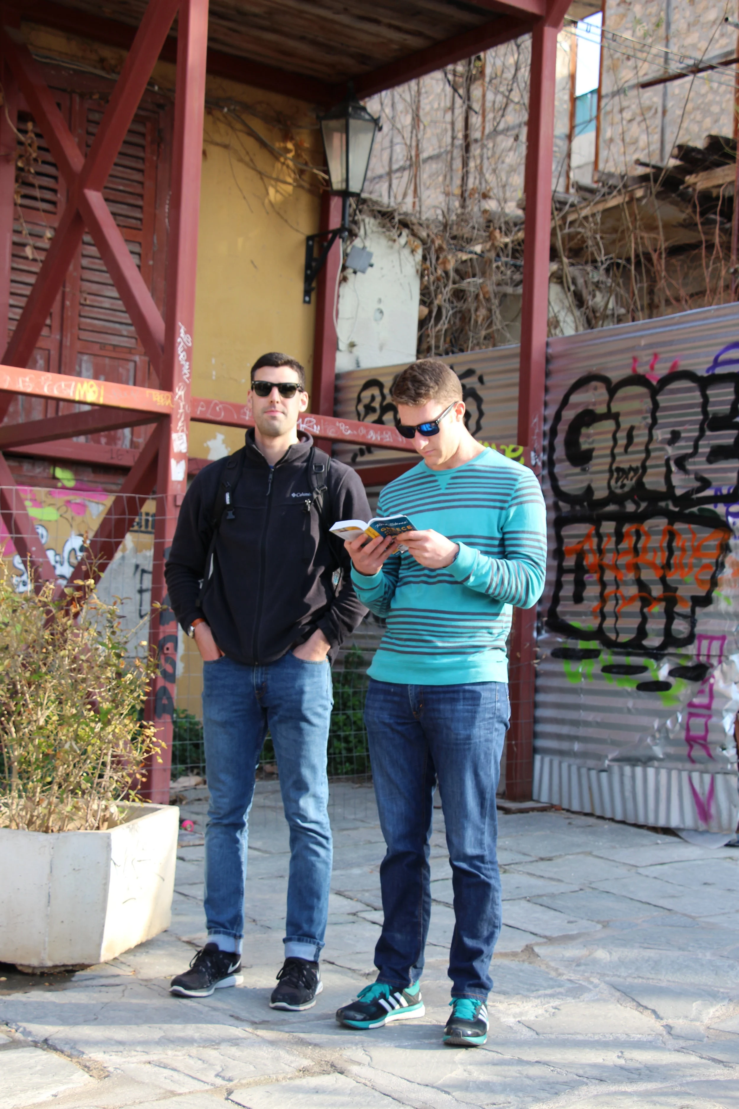 Of course we said “YES!” and booked our flight ASAP. We decided to do Athens for a few days and then Santorini after that. As we messaged back and forth with the Livermore’s we realized one thing: their travel mentality, budget, and desires for the trip could not be more identical with ours. We officially met our perfect travel match. We booked AirBnb’s for both locations and then got so busy we did not sit down to make plans until 2 days before the trip! Luckily it was off season in Greece so everything we wanted to do would still be available, but honestly, us leaving a lot unplanned left plenty of room for spontaneity and that ended up being our best friend. Well, that and our other good friend, Rick Steves. We had our Rick Steves book that Erich and Kelley had given us on Greece a few years ago, and of course Katie and Riley had theirs as well, which ended up being a fantastic resource throughout our trip. That, and Katie’s ability to hand pick from the book the most perfect restaurants.