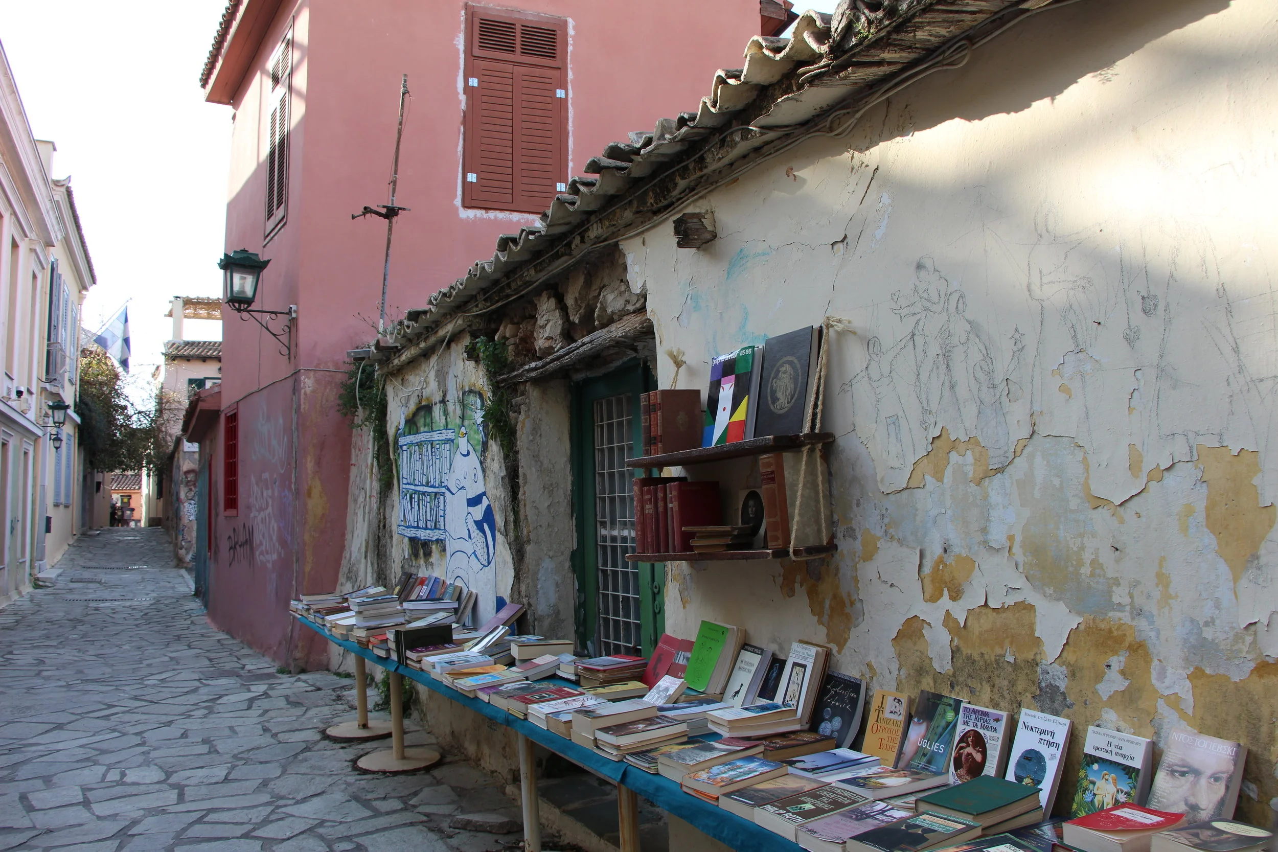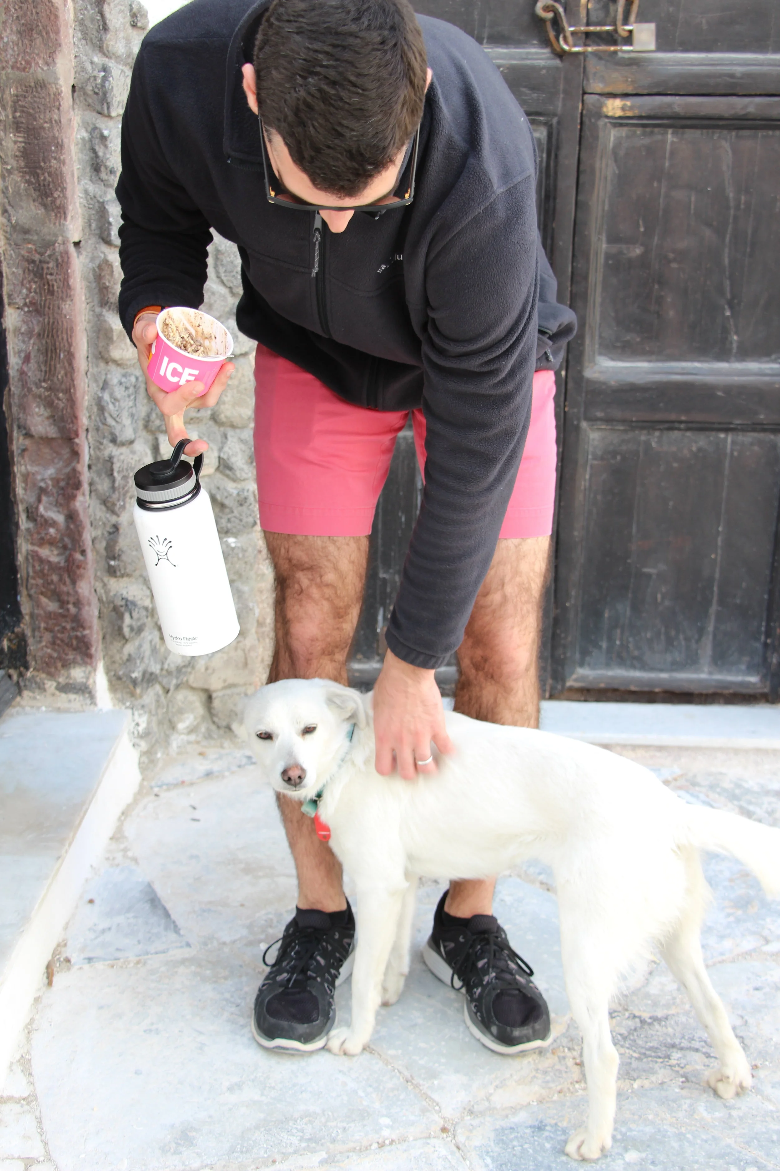 After the sunset we took our time wandering back since this was our last night in Greece! We stumbled into Kelley’s recommendation 2 of 2: Atlantis Book store. Walking in, the man sitting at the counter was exactly what you would expect from this crazy, cluttered, hipster, worn-yet-interesting book store. He was extremely friendly and knew a LOT about the books they sold. Mostly ordered from England, they had everything from classics, to contemporary novels, to travel books and even a 15,000 Euro original edition of The Hobbit, among other collector’s edition books. We perused the tiny cave-like store for quite a while, and I snagged Bill Bryson’s The Complete History of Nearly Everything (the more we travel the moreI realize I learned very little in history class growing up, and I am really enjoying learning more about our world’s history and how we have gotten to this point) as well as an awesome version of Tales of the Greek Heroes with the most beautiful cover illustrated by Daniela Jaglenka Terrazzini, a British artist who has re-illustrated the covers a bunch of classics, and I want them all. They are so unique and colorful! After the bookstore we popped into our trusty Pizza restaurant to get some dessert to go with our dinner! We got some chocolate cake thing the boys wanted and baklava for us girls… and to top it all off, vanilla ice cream!