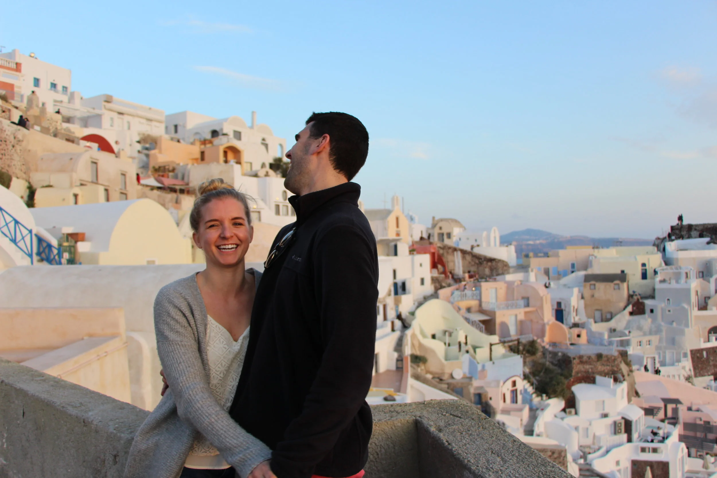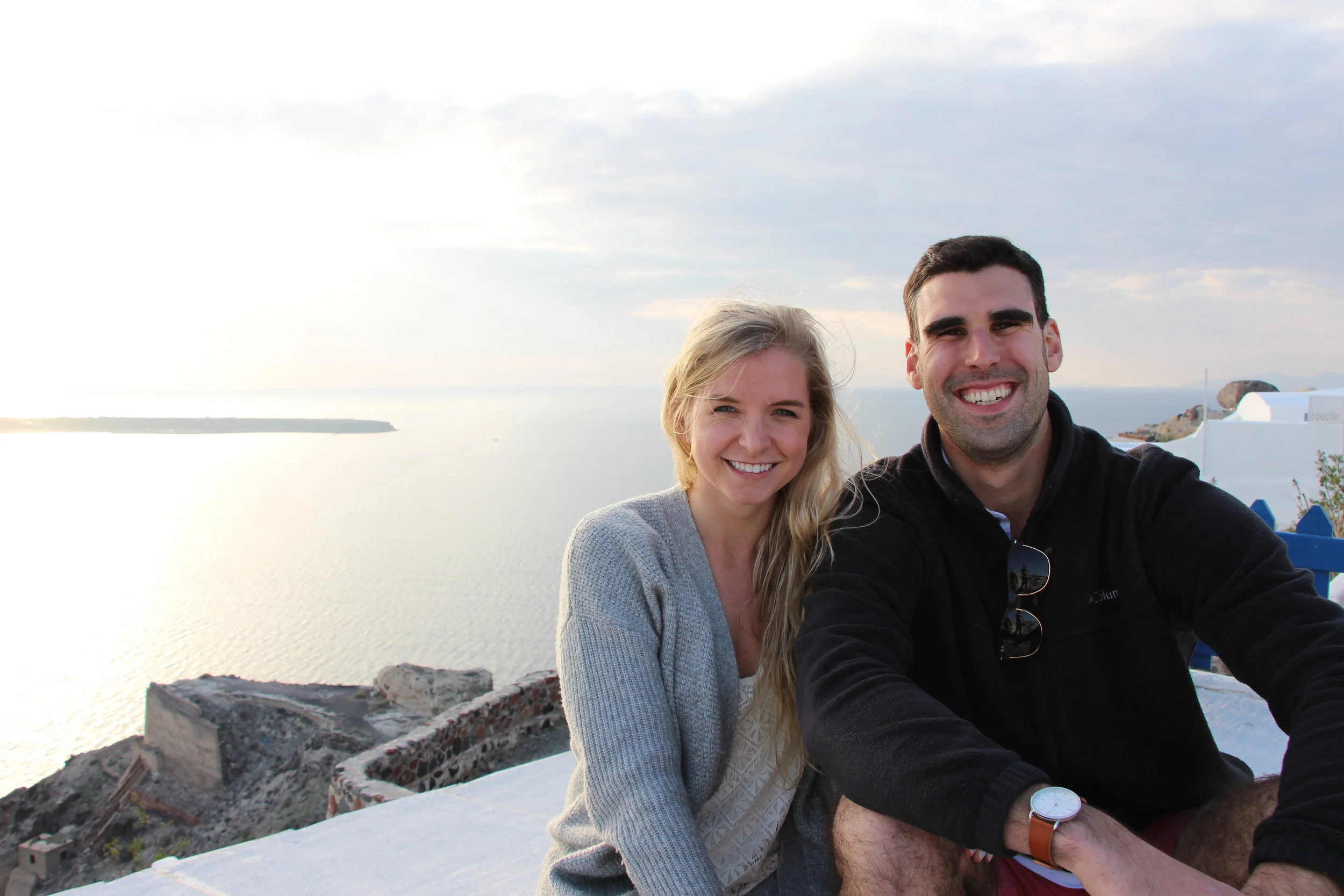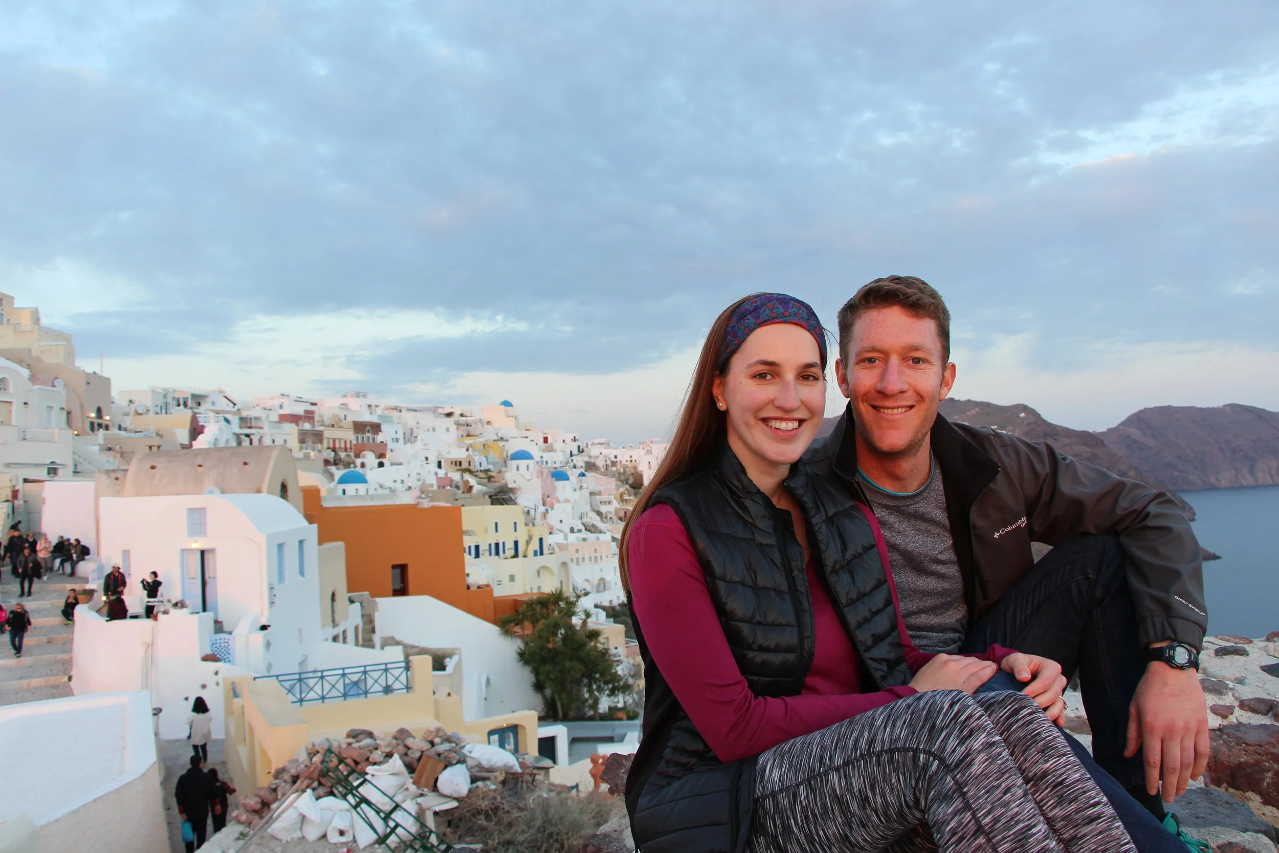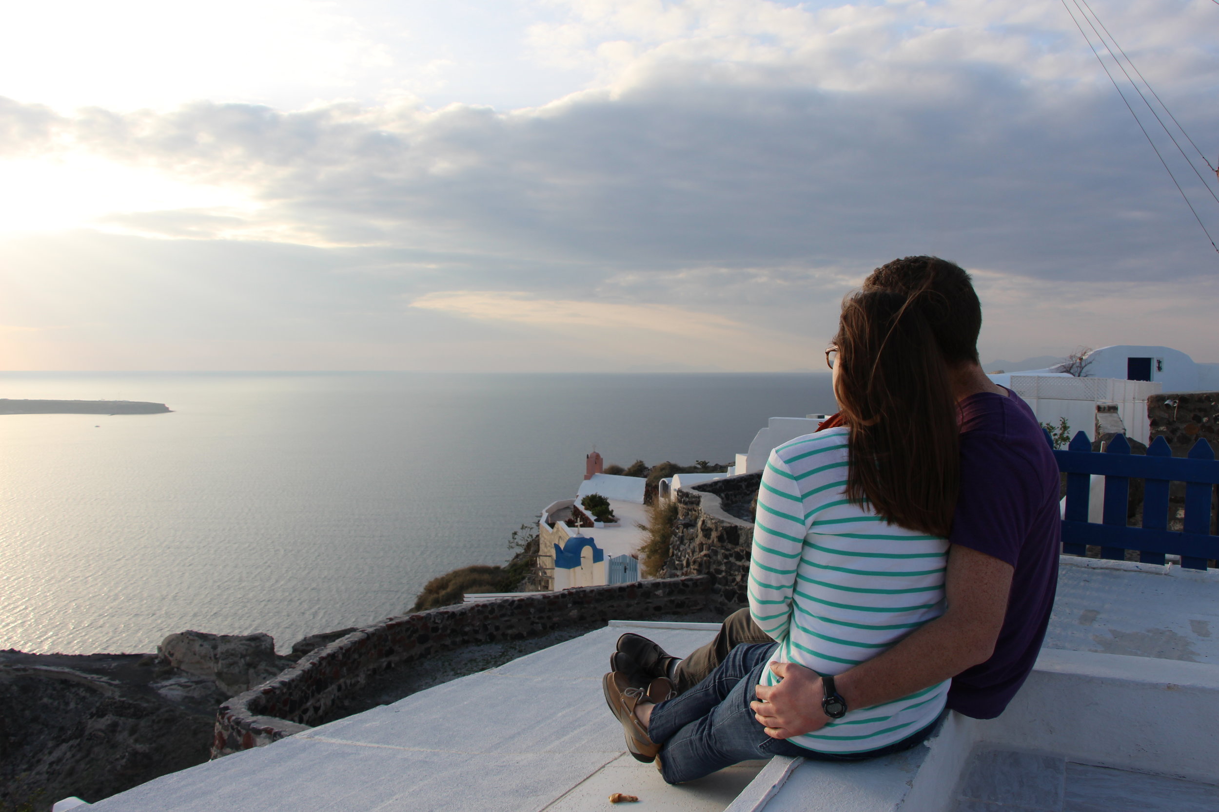 That night it was our turn to cook! We ended up having to shop for groceries at the smallest grocery store I have ever seen- so we had to get creative, but we made it work! We decided on a nice veggie stir fry over rice with warm pita and honey. It ended up really hitting the spot and being a great end to our grand Greek adventure. We really enjoyed relaxing and catching up with/getting to know Katie and Riley. They ended up being the most perfect travel pair- wanting to do almost exactly the same things we did, being willing to cook and be cooked for, saving money or splurging in all the same places, it was really fantastic how it all worked out. We cannot wait to visit them in Israel sometime in the next year or so and were so thankful for this trip with them! The next morning they saw us off and even offered to clean up after breakfast so we could relax and enjoy our final moments with them and our perfect view. After our quick cab ride to the tiny Santorini airport we then caught our next THREE flights, yes THREE to get from Santorini back to Frankfurt, which ended up taking us the entire day. We picked up Ryder from the sitters late and whipped together a dinner before crashing into our beds, content with sun-kissed skin and visions of Santorini sunsets dancing in our heads. Greece, you are so special. We cannot wait to be back. Until then, we cherish the memories. Efcharistó! (Eff-er-ee-stOH!)