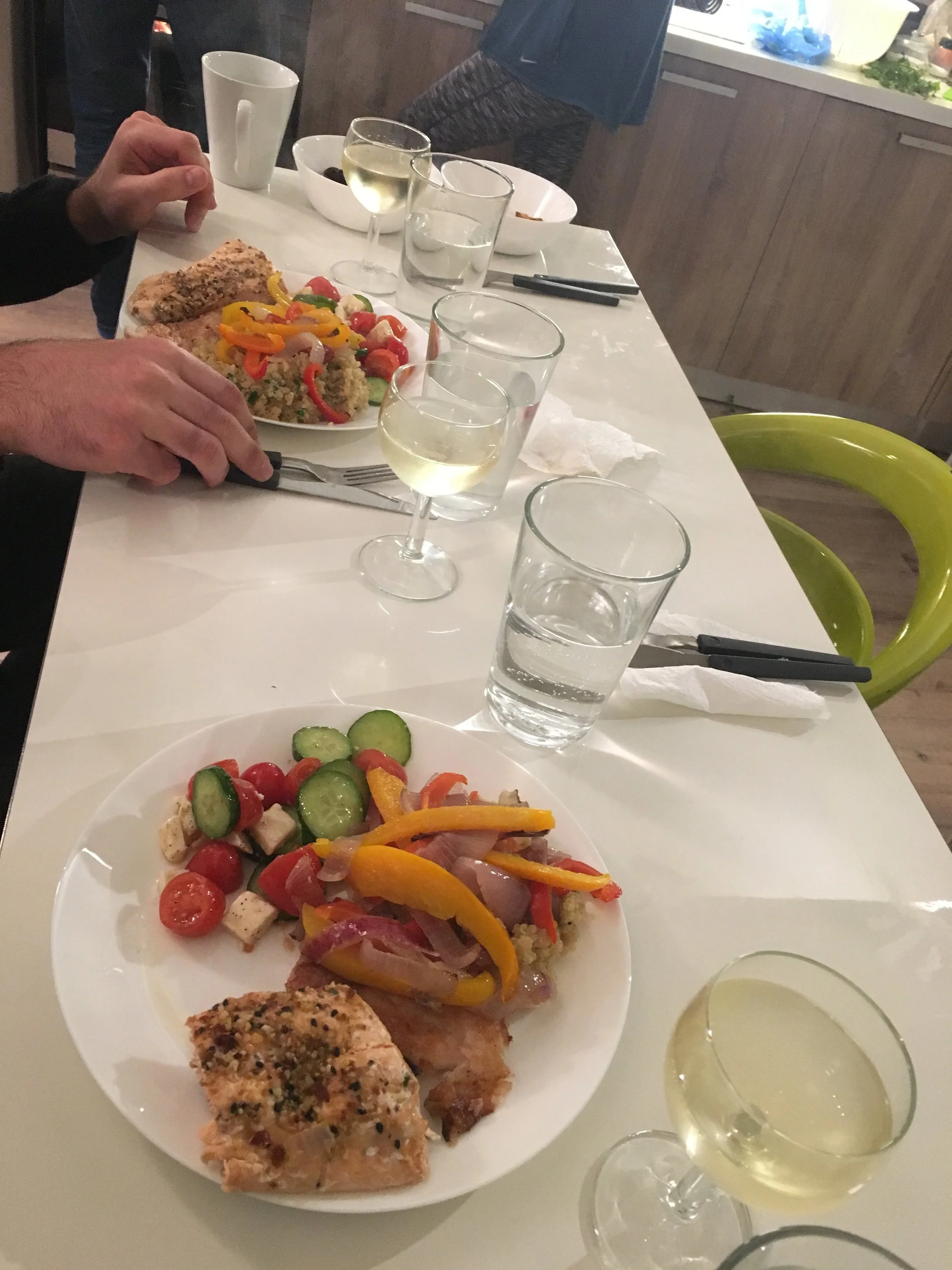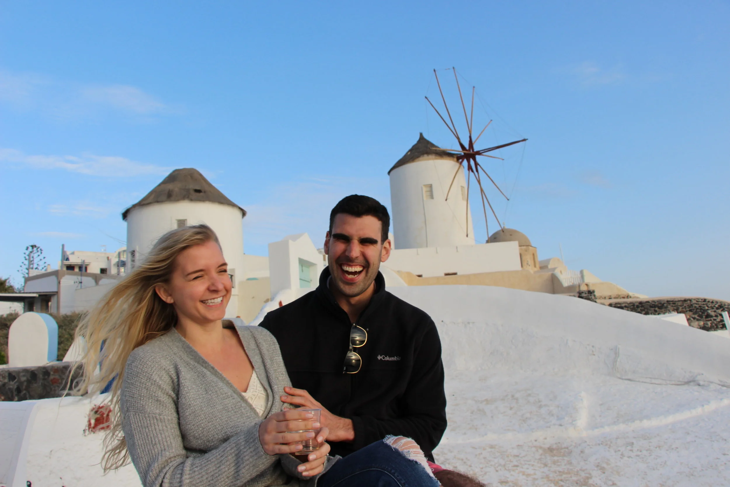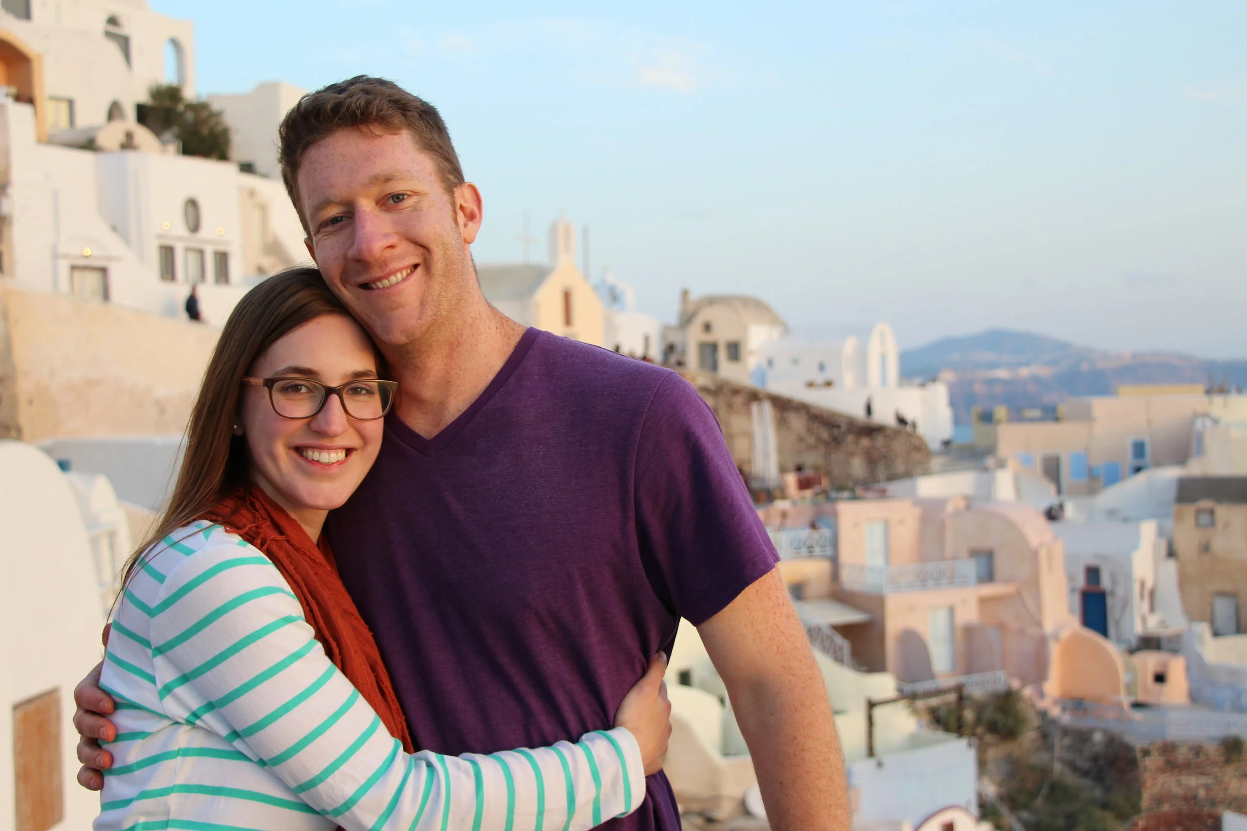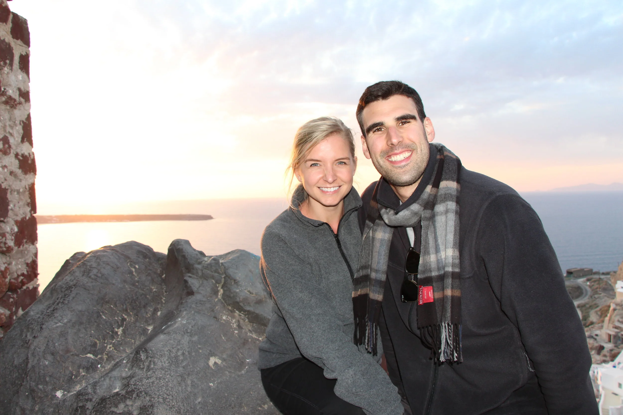 That night it was our turn to cook! We ended up having to shop for groceries at the smallest grocery store I have ever seen- so we had to get creative, but we made it work! We decided on a nice veggie stir fry over rice with warm pita and honey. It ended up really hitting the spot and being a great end to our grand Greek adventure. We really enjoyed relaxing and catching up with/getting to know Katie and Riley. They ended up being the most perfect travel pair- wanting to do almost exactly the same things we did, being willing to cook and be cooked for, saving money or splurging in all the same places, it was really fantastic how it all worked out. We cannot wait to visit them in Israel sometime in the next year or so and were so thankful for this trip with them! The next morning they saw us off and even offered to clean up after breakfast so we could relax and enjoy our final moments with them and our perfect view. After our quick cab ride to the tiny Santorini airport we then caught our next THREE flights, yes THREE to get from Santorini back to Frankfurt, which ended up taking us the entire day. We picked up Ryder from the sitters late and whipped together a dinner before crashing into our beds, content with sun-kissed skin and visions of Santorini sunsets dancing in our heads. Greece, you are so special. We cannot wait to be back. Until then, we cherish the memories. Efcharistó! (Eff-er-ee-stOH!)