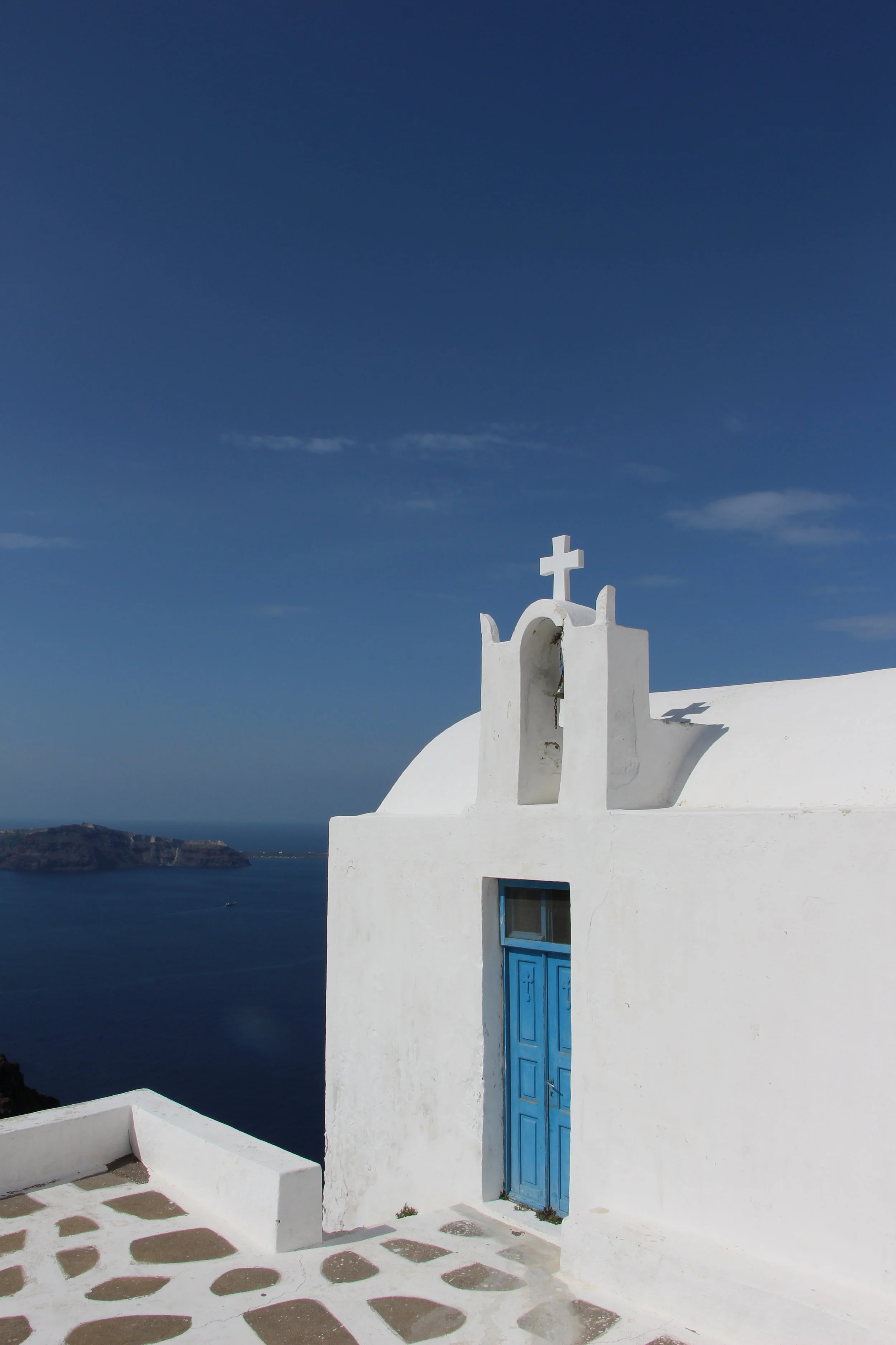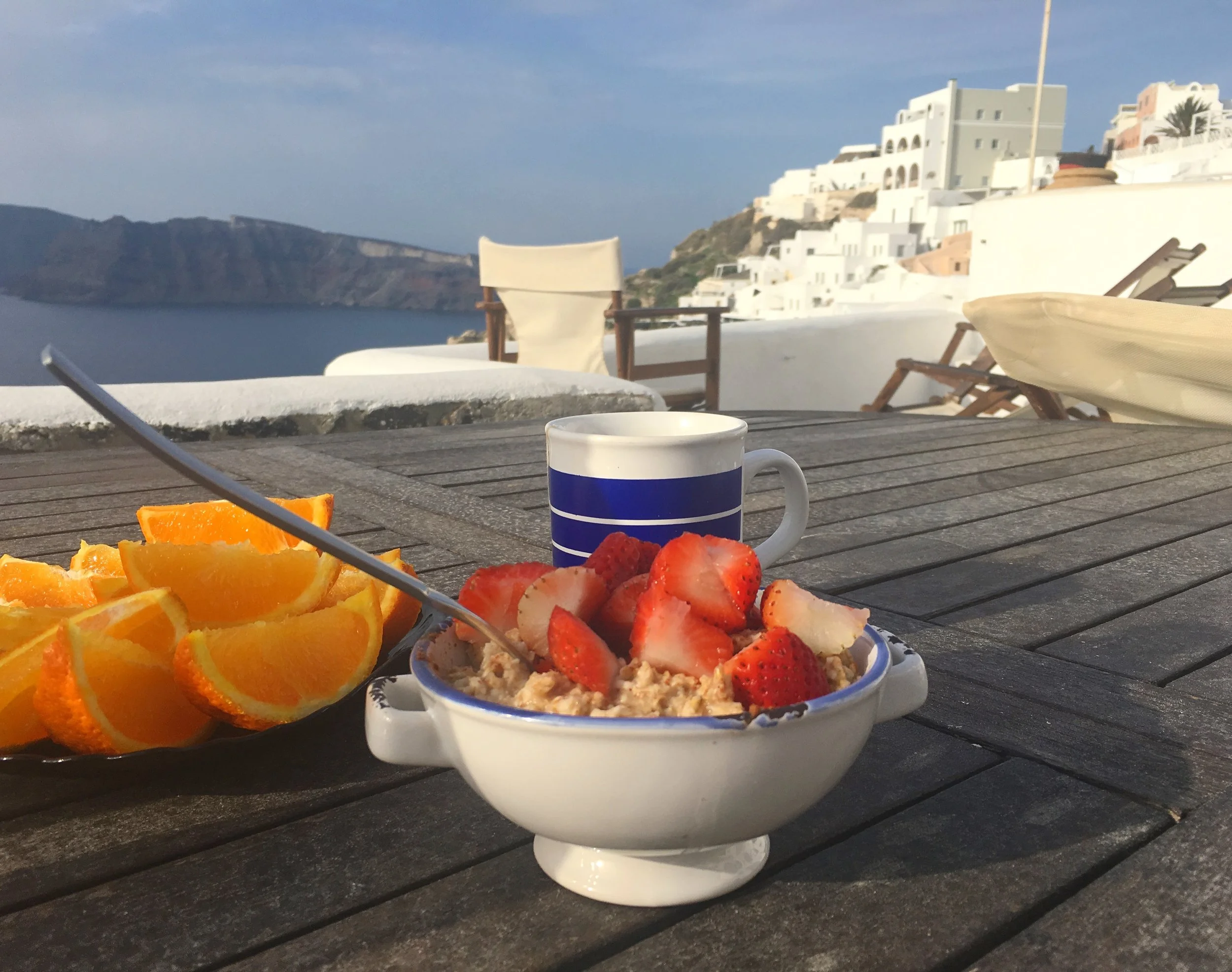 When we arrived at the AirBnb we were speechless. Never in my life have I had the opportunity to stay somewhere quite so beautiful and picturesque. The pictures of Santorini are completely accurate, if even selling it a bit short. The white and sometimes pastel-colored houses stack side by side, one of top of the other down the cliff-side with views of the caldera- what used to be the rest of the Island of Santorini before its volcano erupted leaving Santorini in 3 parts- the largest of which is the main island in its interesting moon shape wrapping around the caldera, making for an incredible view of blue sky meeting a deeper blue ocean. After getting settled in our new home for the next few days we just sat there on the patio, taking it all in. So peaceful. So VAST. So beautiful. Of course I couldn’t help myself from snapping about 1000 pictures right away, everywhere you turn there is something picturesque you feel the need to capture!
