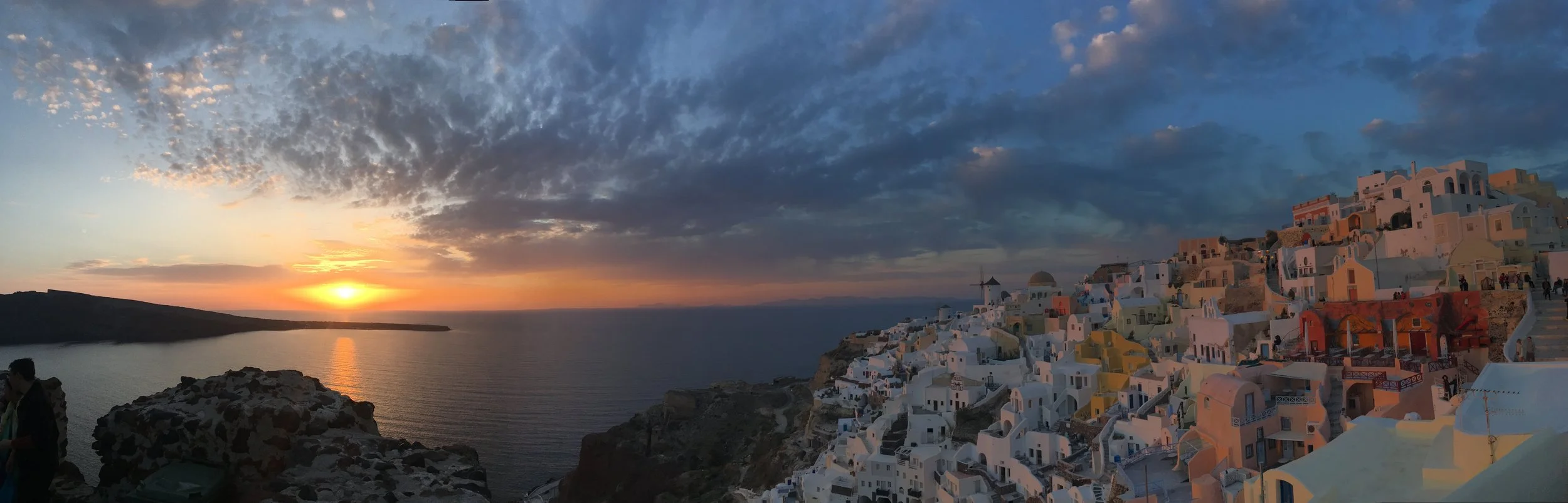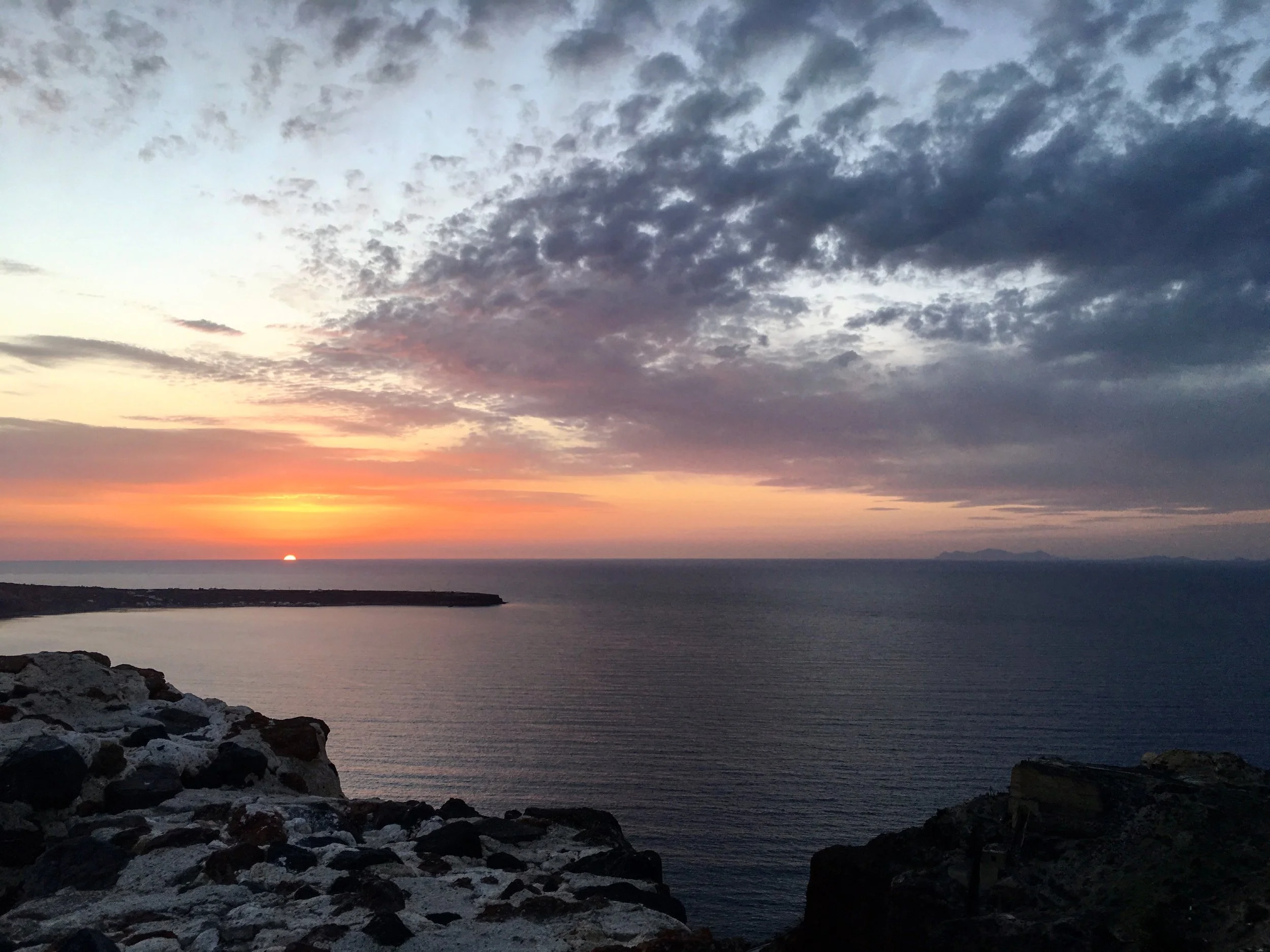 Once we made it to Fira, Katie led us to yet another gem of a restaurant: Mama’s House. There we enjoyed some traditional Greek fare and basically had the place to ourselves. After lunch, we hopped in a taxi for our journey back to Oia to catch another stunning sunset. This time we joined the Asian tourists at the “castle” (more like a stone walled platform) where Google designated as the “Oia Sunset Lookout”. The views here really were spectacular, especially looking back at Oia. I will let the pictures speak for themselves…