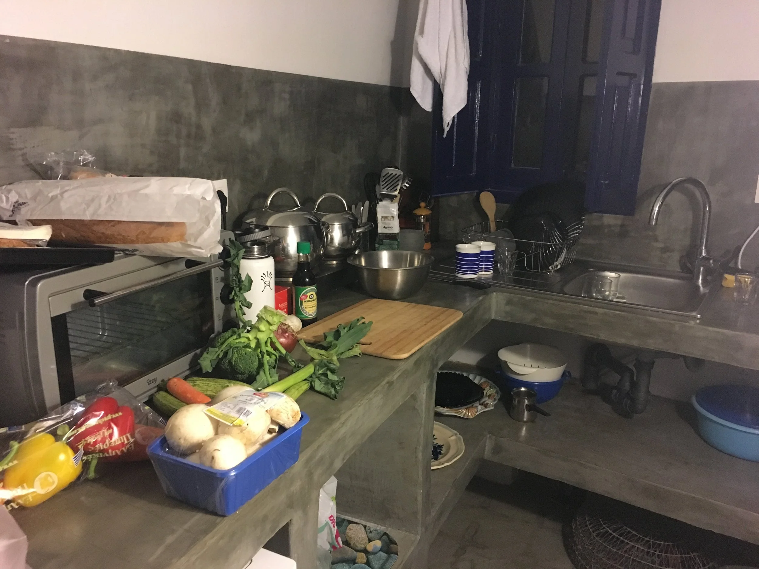 At the end of our tour we headed to the top of the 360 bar and restaurant, which seems like it would be insanely touristy with its 360 views of the Acropolis, downtown Athens and of course, the sunset, but we ended up being surrounded by dark-haired, Greek-speaking, non-backpack wielding natives and could not be happier about it. After finally snagging a table on the crowded terrace we ordered a few tasty cocktails and simply enjoyed the view. The sunset ended up being more than amazing, especially enjoyed from that vantage point with the Acropolis right in view as well. After our sunset drinks it was off to the AirBnb for a “home-cooked” meal! Katie and Riley NAILED IT and we were officially nervous to return the favor in Santorini, having no clue what kind of groceries we would find on the Island.